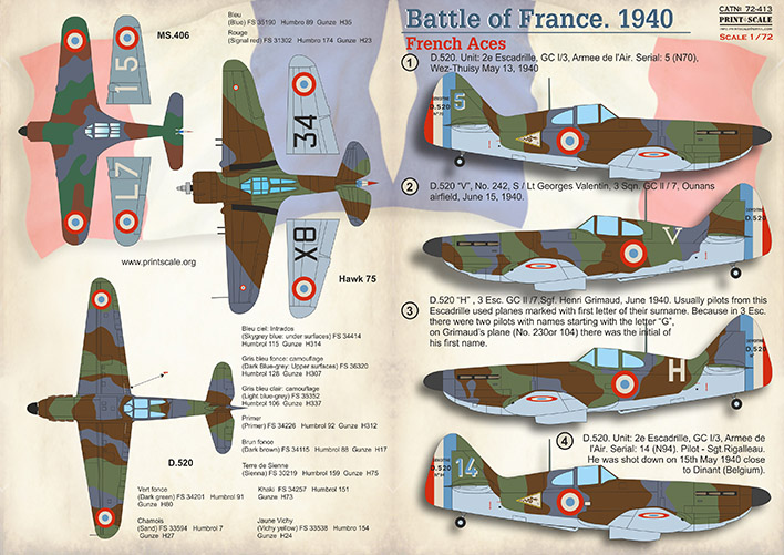4. D.520. Unit: 2e Escadrille, Gc I/3, Armee de l'Air. Serial: 14 (N94). Pilot Sgt.Rigalleau. He was shot down on 15th May 1940 close to Dinant (Belgium).