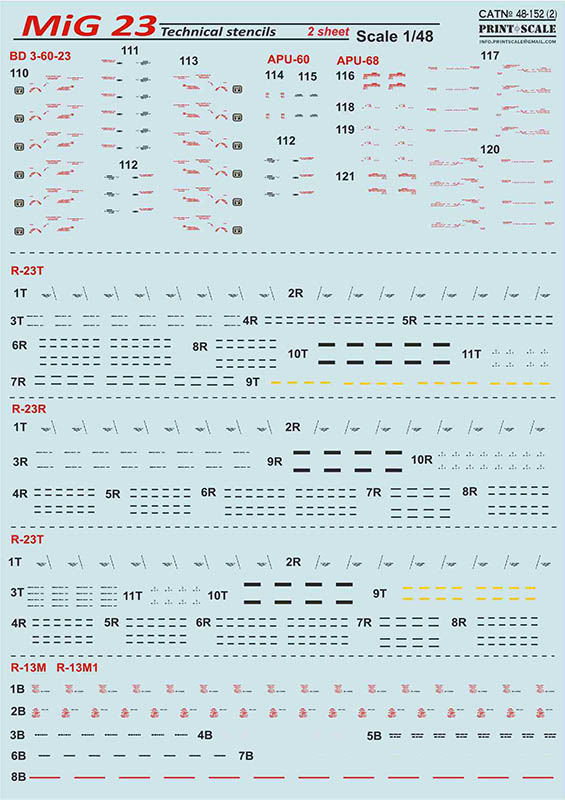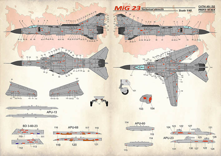 Print Scale - 1/48 Mikoyan MiG-23 Technical stencils