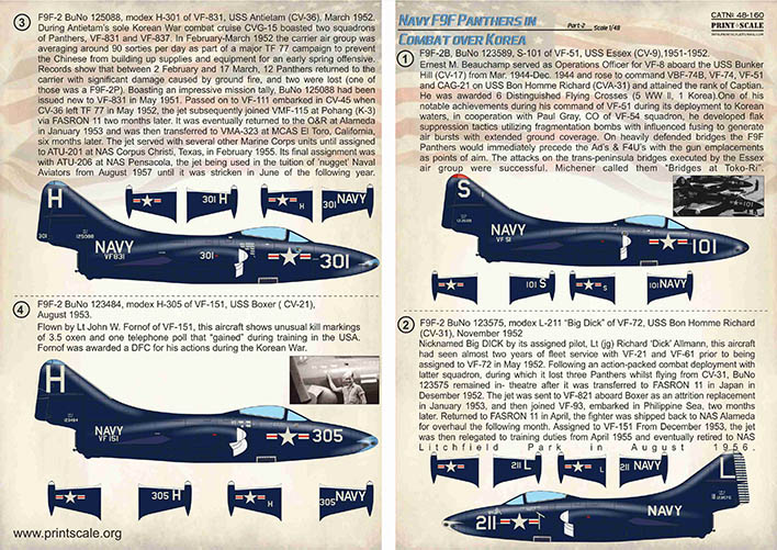 Print Scale - 1/48 Navy Grumman F9F-2/F9F-3 Panthers in Combat over Korea Part 2 / 48-160 /