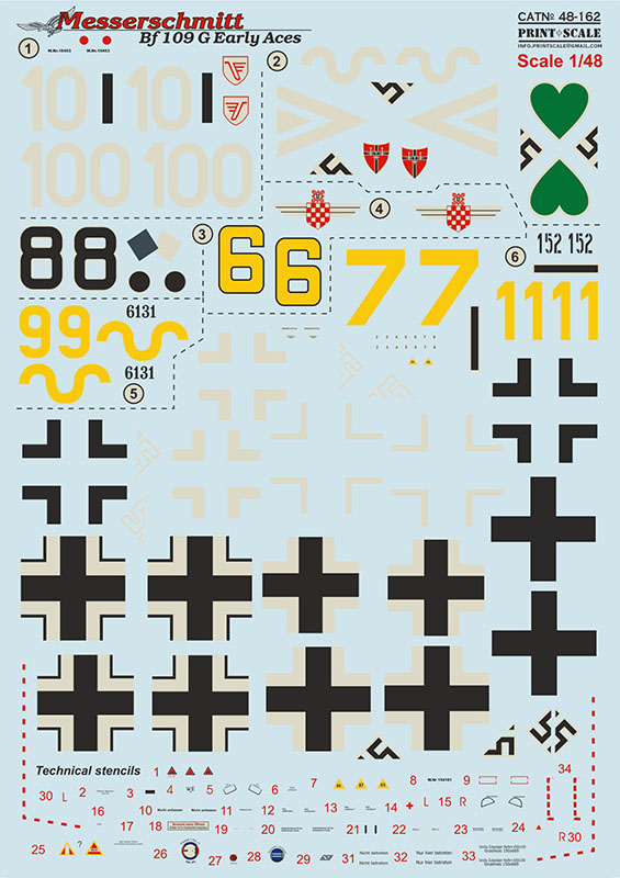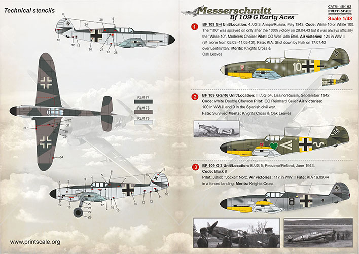 Print Scale - 1/48 Messerschmitt Bf-109G High Altitude Aces / 48-162 /