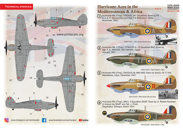 Print Scale - 1/48 Hawker Hurricane Aces of the Mto and Africa Part 2