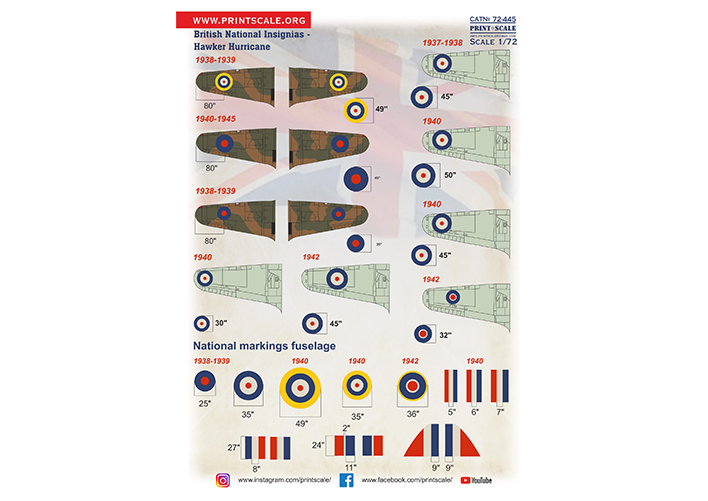 Print Scale - 1/72 Raf National Insignia. Hawker Hurricane