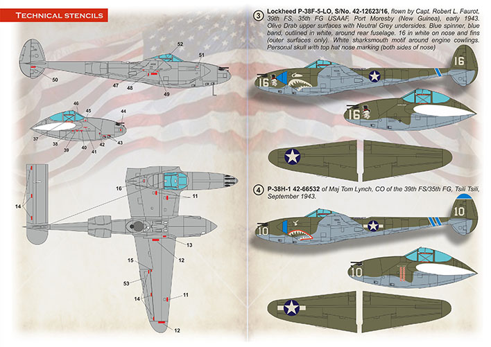 3. Lockheed P-38F-5-LO, S/No. 42-12623/16, flown by Capart Robert L. Faurot, 39th FS, 35th Fg USAAF, Port Moresby New Guinea, early 1943.