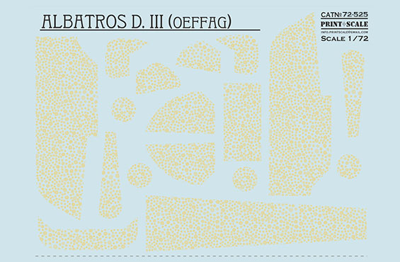 Print Scale - Albatros D.III OEFAG A 1/72 scale decal for building a model of the light-duty version of the Great War Albatros III aircraft produced by the Austrian factory Oesterreichische Flugzeugfabrik Ag Oeffag. Includes 9 variants plus specialized camouflage.