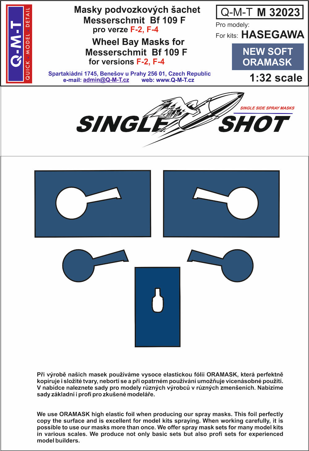 Q-M-T - 1/32 Messerschmitt Bf-109F-2/Bf-109F-4 wheel bay paint masks (for Hasegawa kits) made from New Soft Oramask