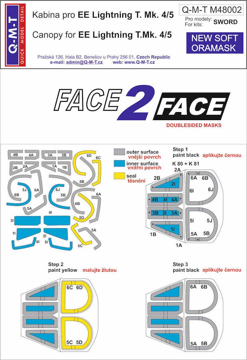 Q-M-T - 1/48 Face 2 Face Paint masks Canopy for BAC/EE Lightning T Mk.4/5 (for SWORD kits) New Soft Oramask