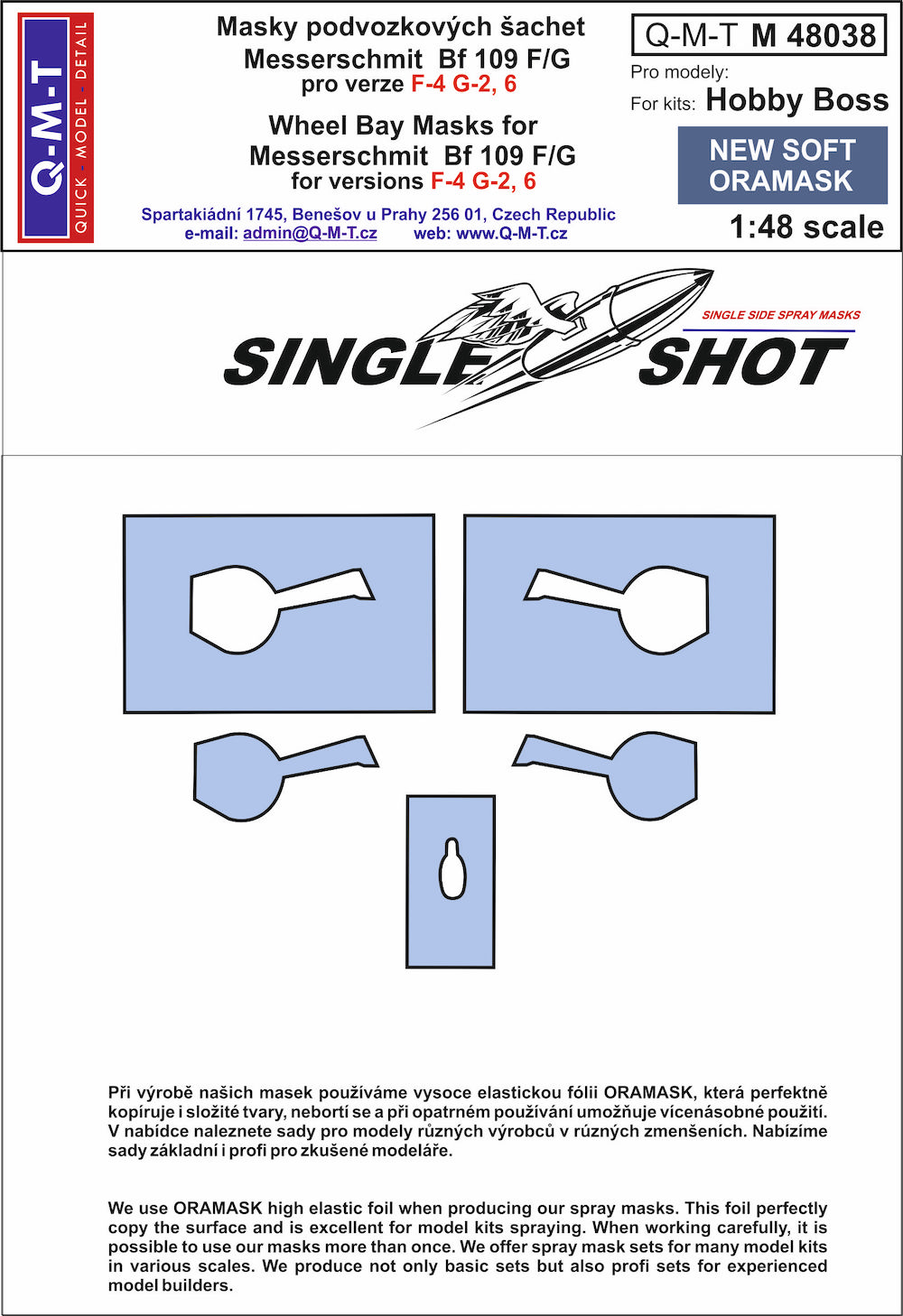Q-M-T - 1/48 Messerschmitt Bf-109F-4/Bf-109G-2/Bf-109G-6 wheel bay paint masks (for Hobby Boss kits) made from New Soft Oramask