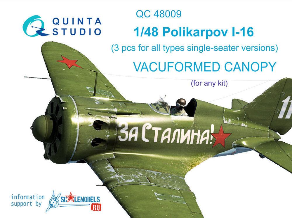 QUINTA STUDIO - 1/48 Vacu canopy for Polikarpov I-16 (3 pcs.)