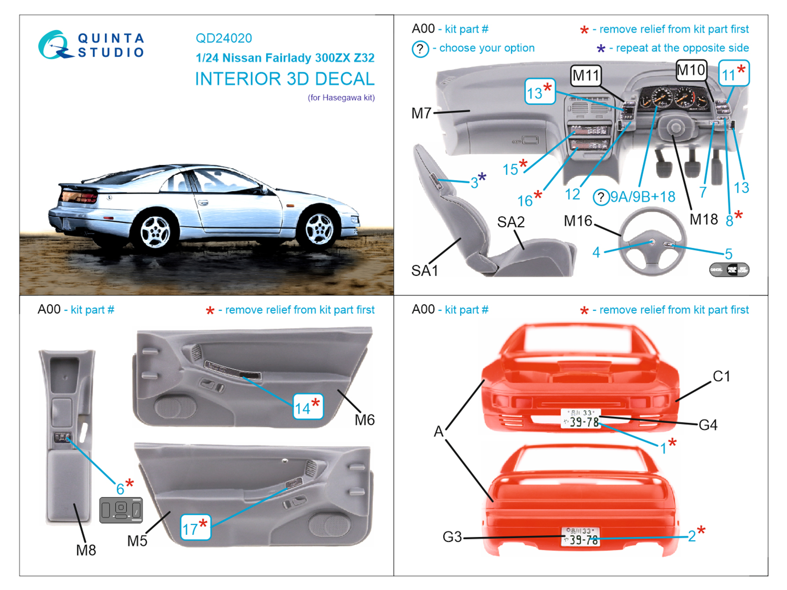 Quinta Studio - 1/24 Nissan Fairlady 300ZX Z32 3D-Printed & coloured Interior for for Hasegawa