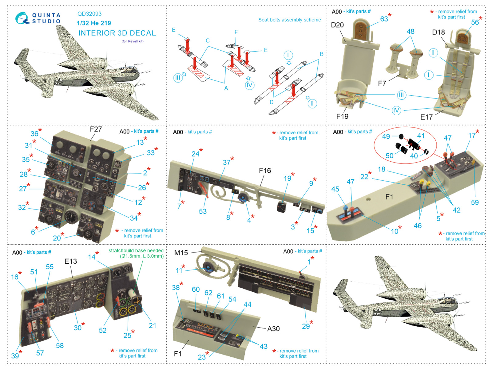 Quinta Studio - 1/32 Heinkel He-219 3D-Printed & coloured Interior on decal paper (for Revell kits)