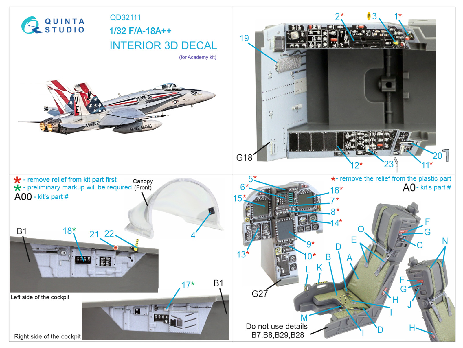 QUINTA STUDIO - 1/32 F/A-18A++ 3D-Printed & color Interior (ACAD)