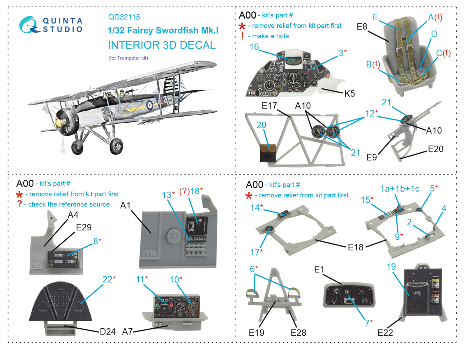 QUINTA STUDIO - 1/32 Fairey Swordfish Mk.I 3D-Printed & color Interior