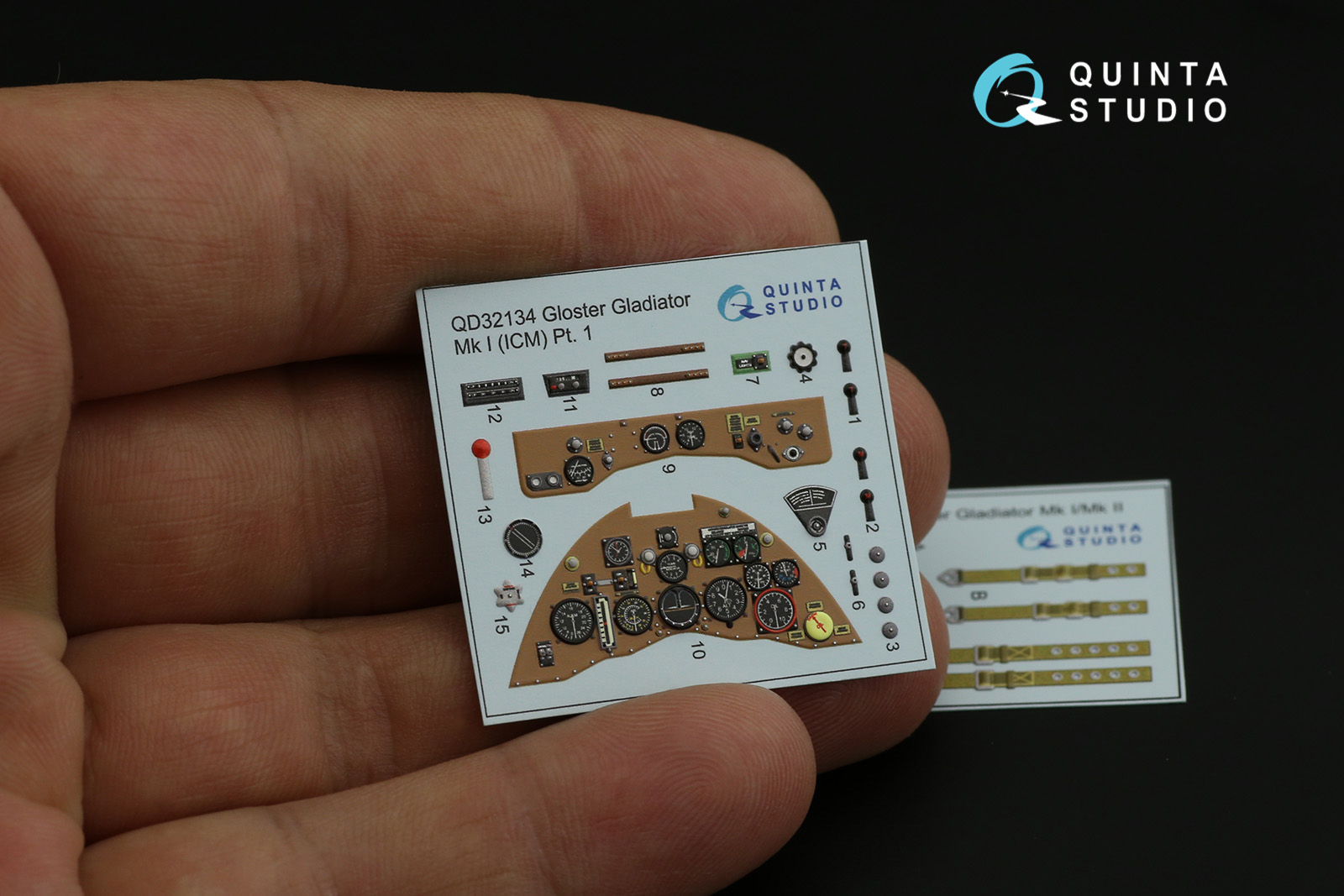 Quinta Studio - 1/32 Gloster Gladiator Mk.I 3D-Printed & coloured Interior on decal paper (for Icm kits)