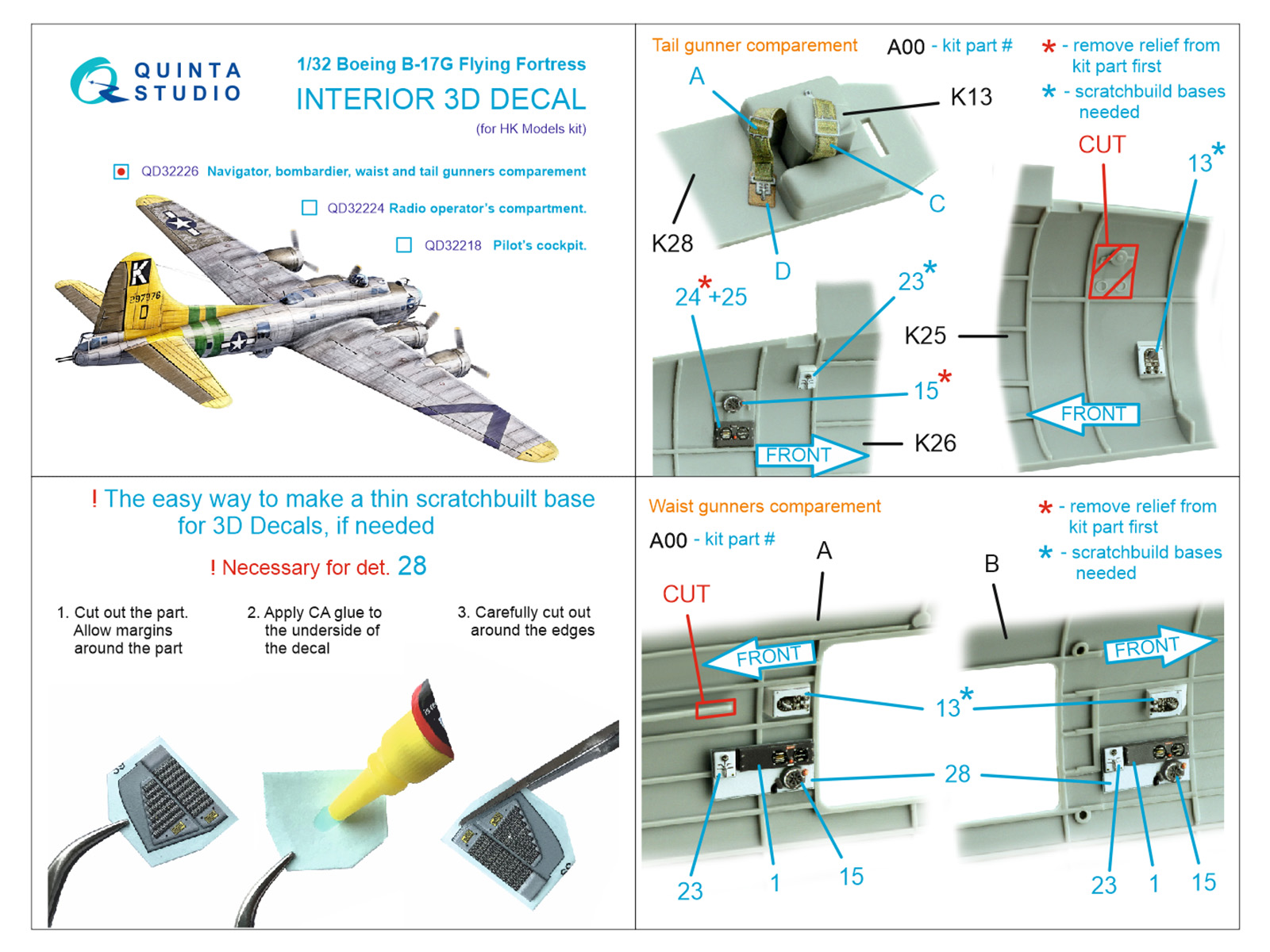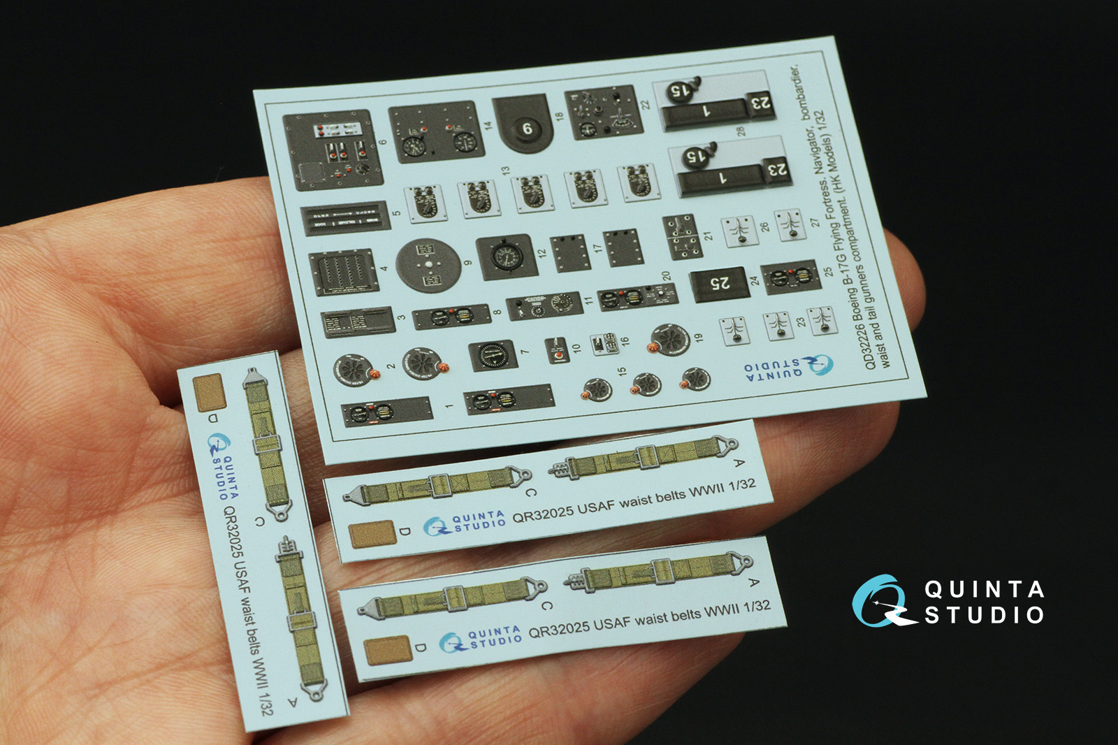 Quinta Studio - 1/32 Boeing B-17G Navigator, bombardier, waist and tail gunners compartments. Interior for HK models
