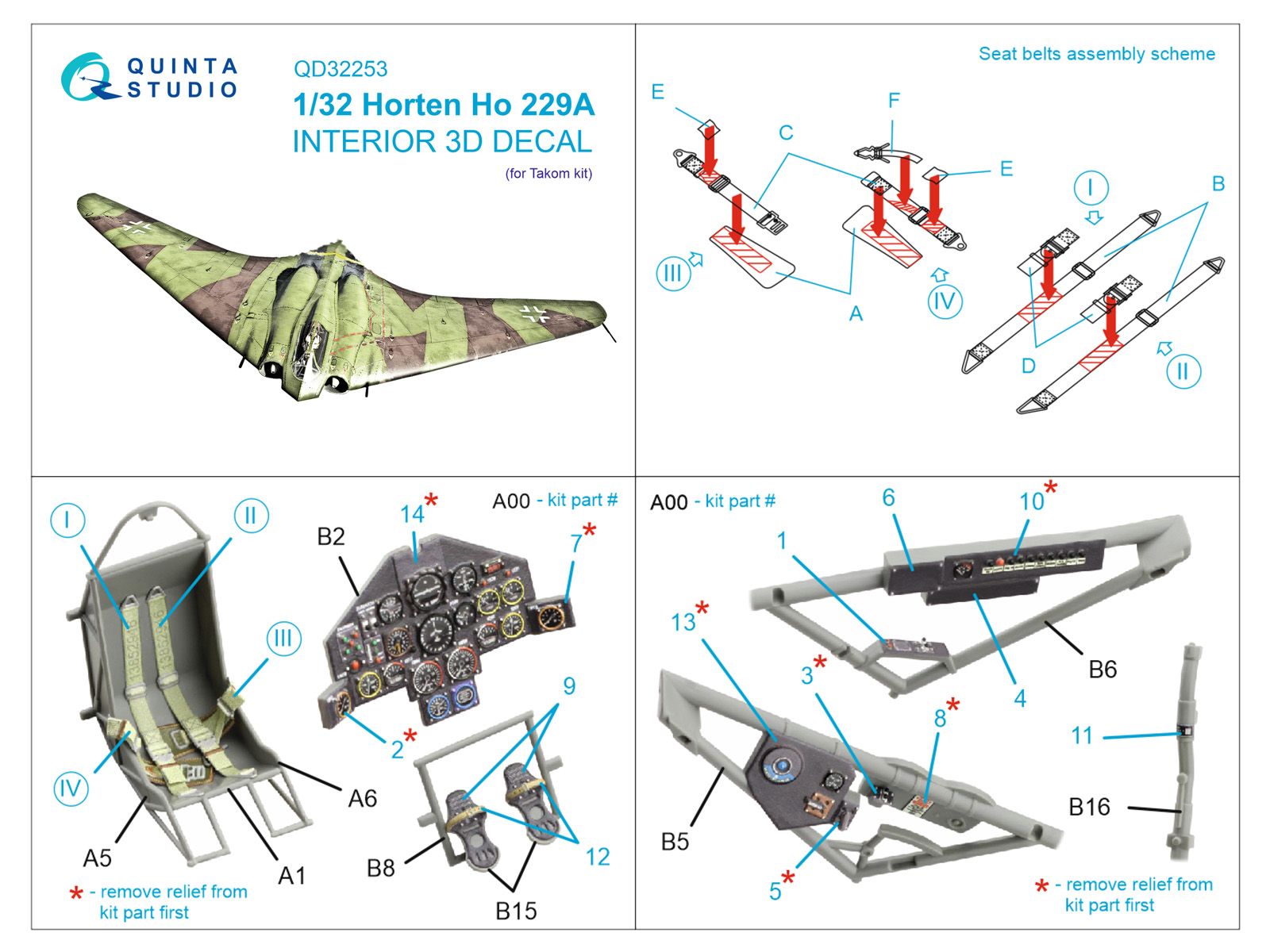 Quinta Studio - 1/32 Horten Ho-229A 3D-Printed & coloured Interior for Takom