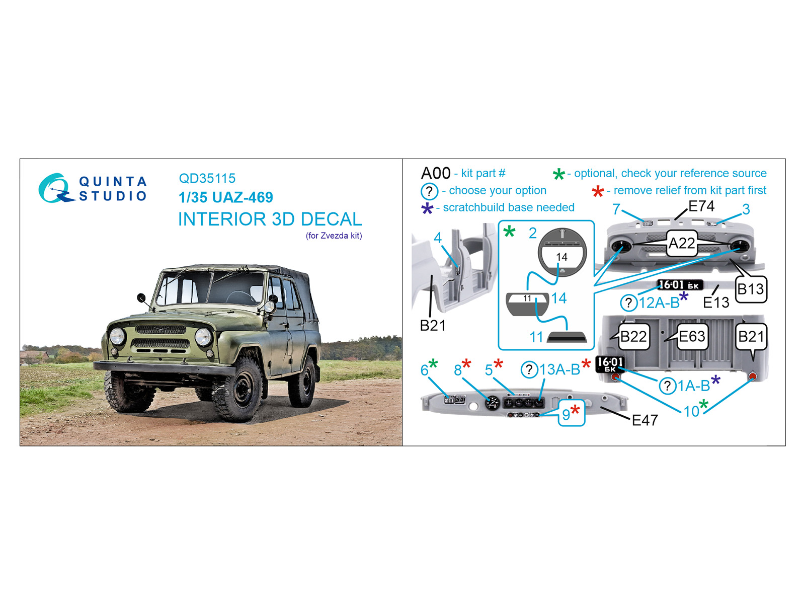 Quinta Studio - 1/35 UAZ-469 3D-Printed & coloured Interior for Zvezda