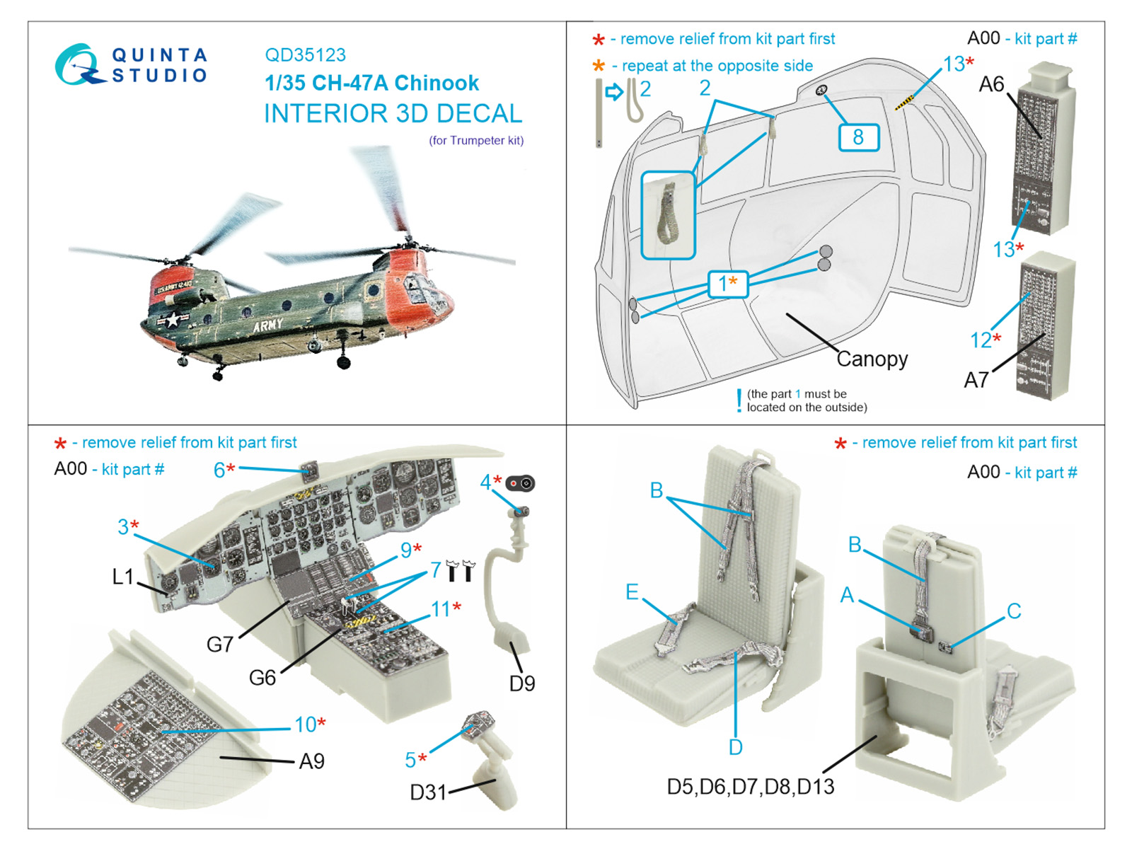 Quinta Studio - 1/35 Boeing CH-47A 3D-Printed & coloured Interior for Trumpeter