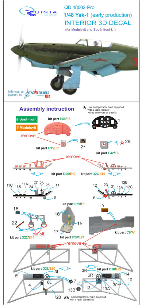 Quinta Studio - 1/48 Yakovlev Yak-1 (early production) 3D-Printed & coloured Interior on decal paper (for all kits)