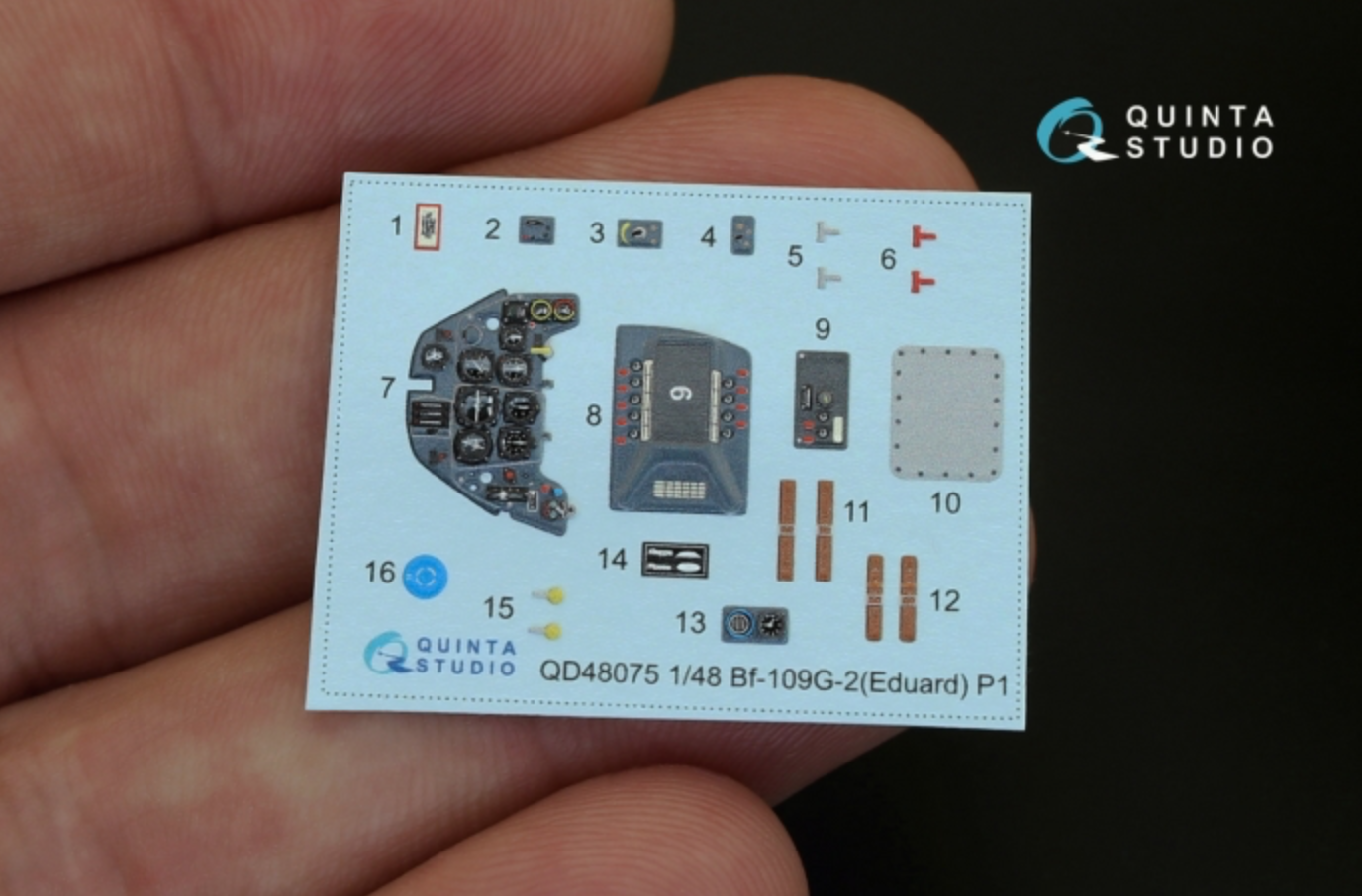 Quinta Studio - 1/48 Messerschmitt Bf-109G-2 3D-Printed & coloured Interior on decal paper (for Eduard kits)