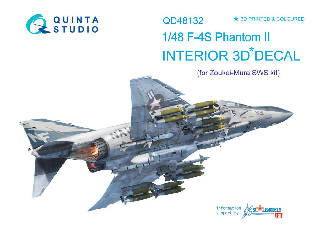 Quinta Studio - 1/48 McDonnell F-4S Phantom 3D-Printed & coloured Interior on decal paper (for Zoukei-Mura kits)