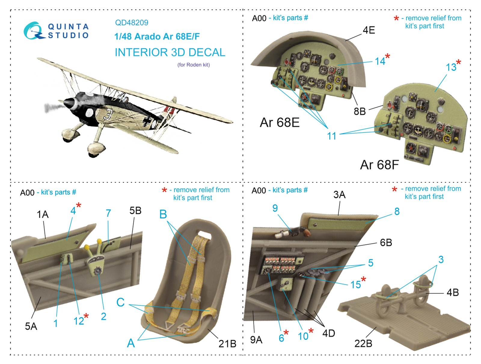 QUINTA STUDIO - 1/48 Arado Ar 68 E/F 3D-Printed & color Interior (RDN)