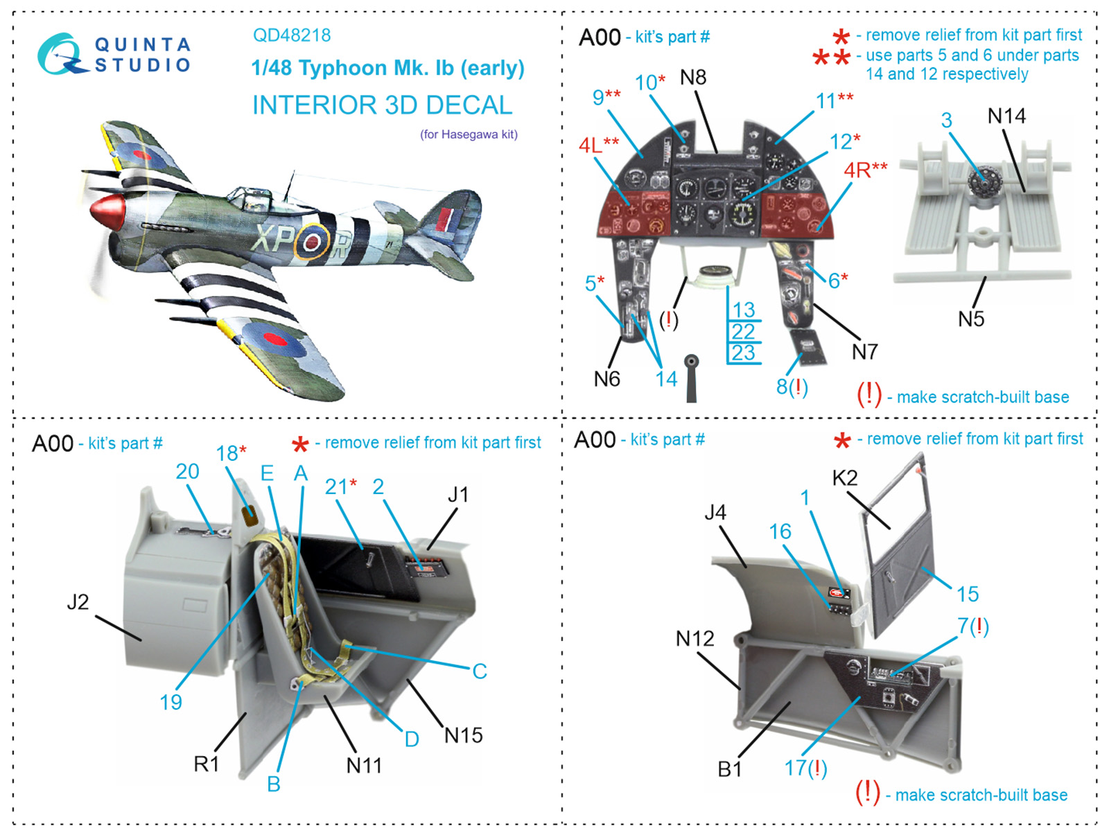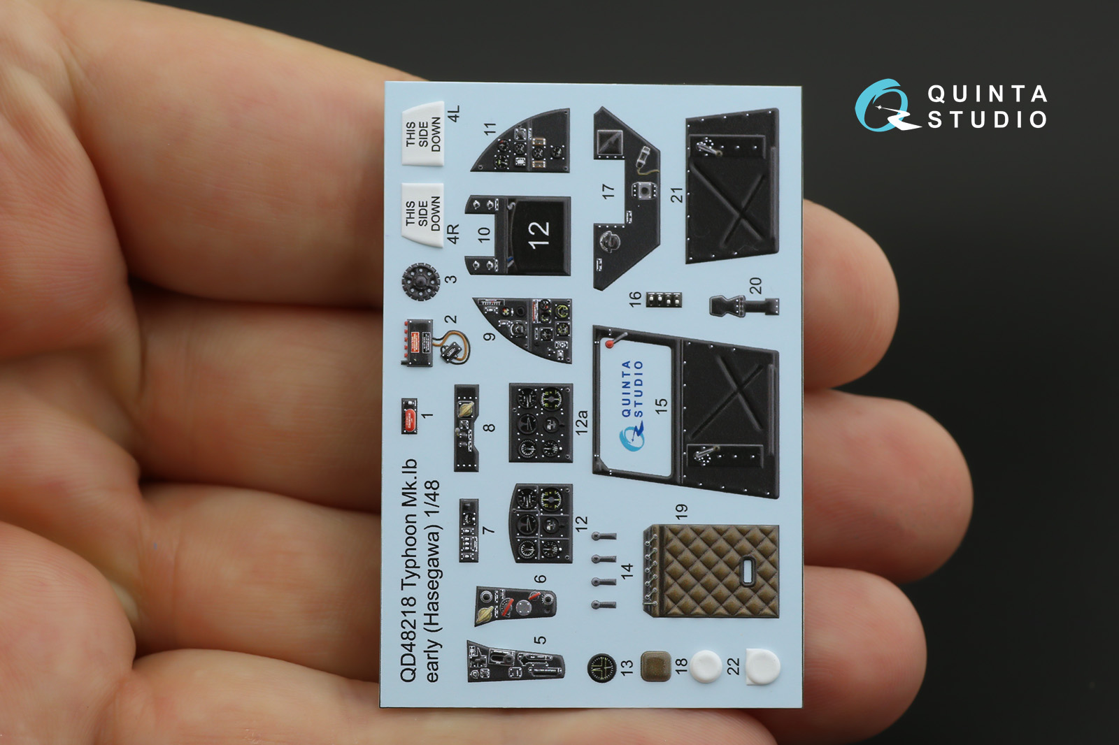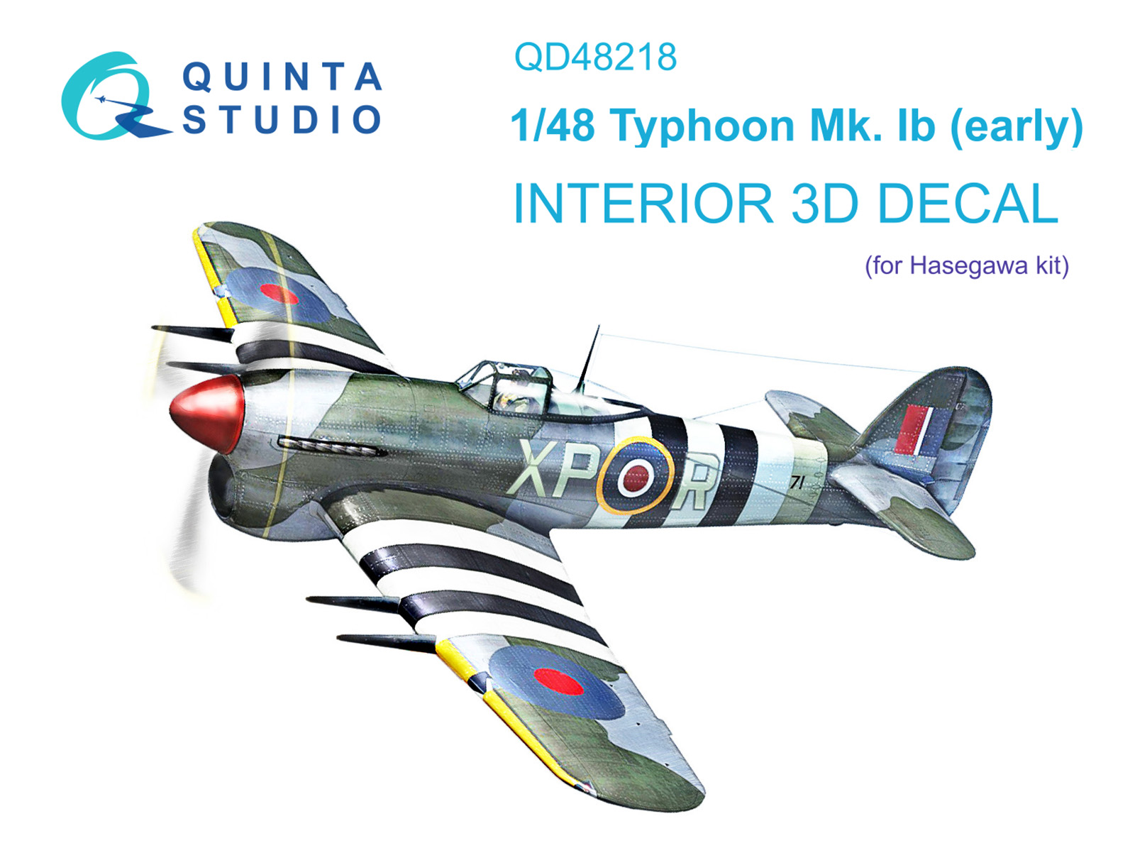 Quinta Studio - 1/48 Hawker Typhoon Mk.Ib early 3D-Printed & coloured Interior on decal paper (for Hasegawa kits)