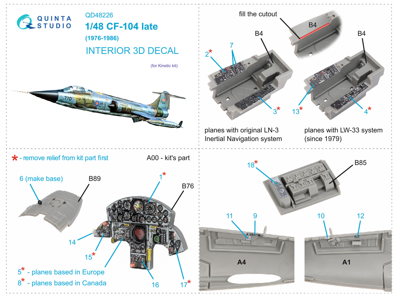 Quinta Studio - 1/48 Lockheed CF-104 Starfighter Late 1976 to 1986 3D-Printed & coloured Interior on decal paper (for Kinetic kits)