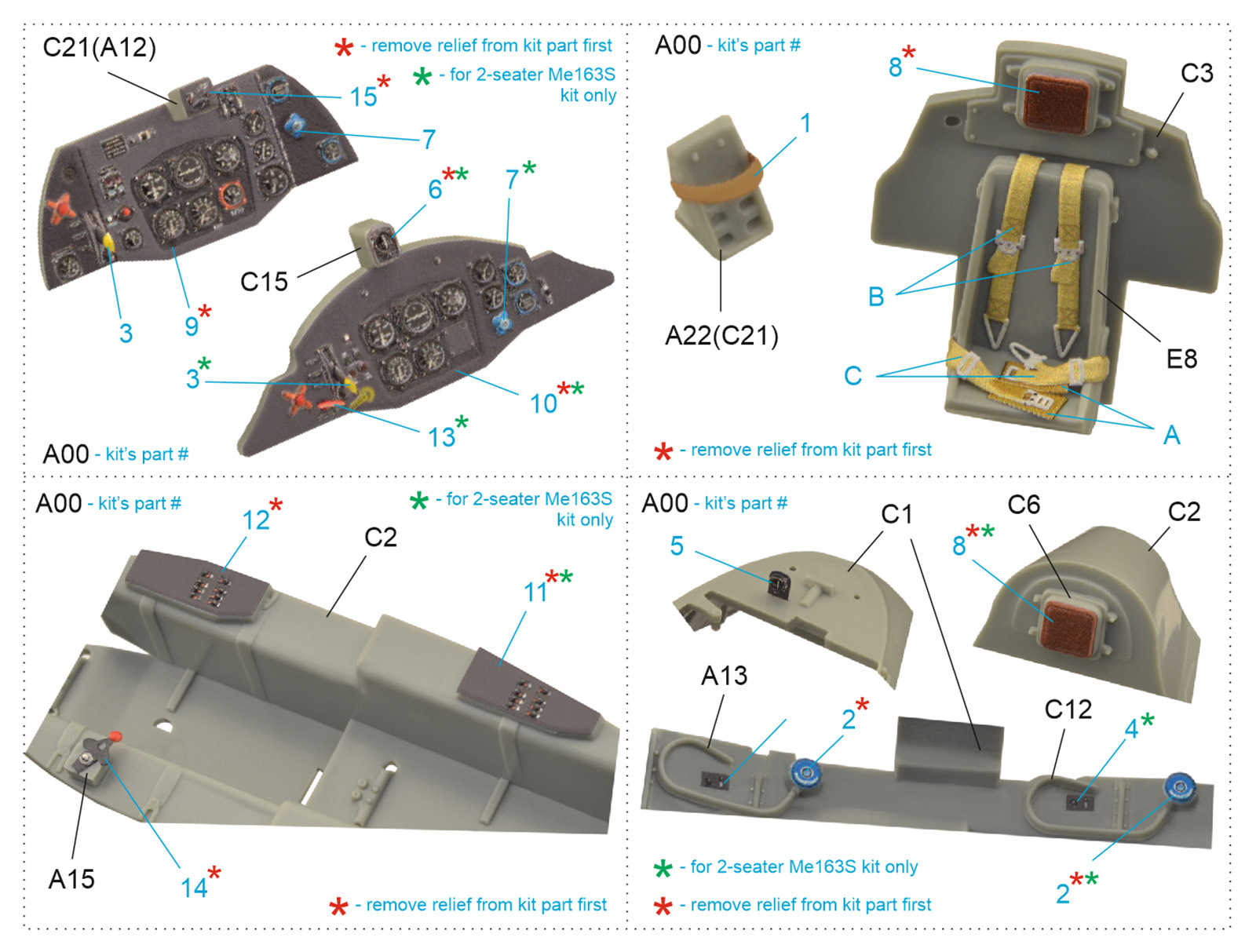 Quinta Studio - 1/48 Messerschmitt Me-163B/S 3D-Printed & coloured Interior on decal paper (for Dragon kits)