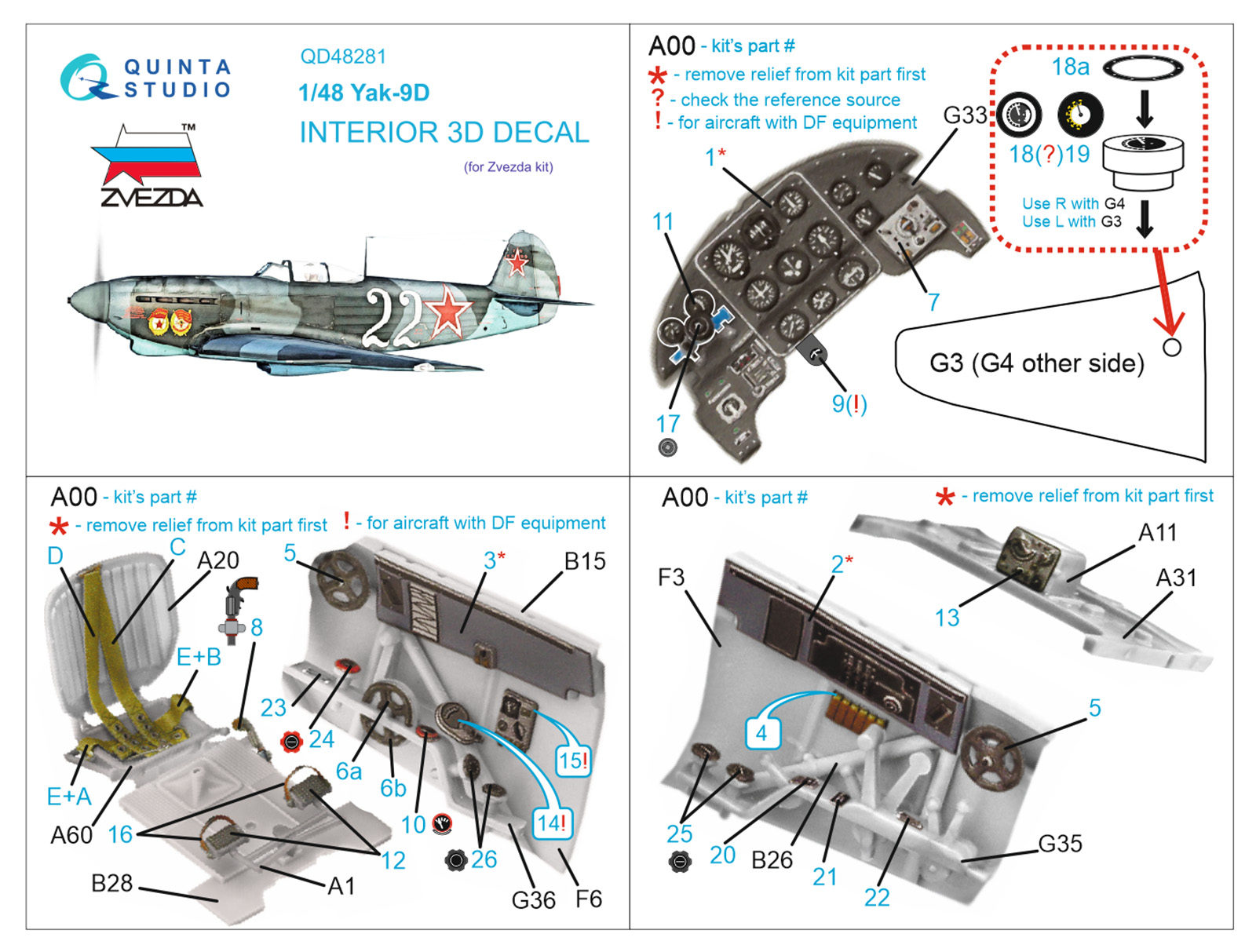 QUINTA STUDIO - 1/48 Yak-9D 3D-Printed & color Interior (ZVE)