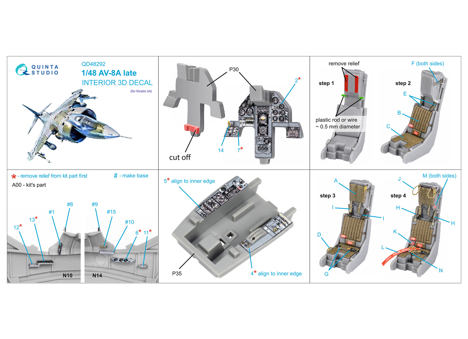 Quinta Studio - 1/48 McDonnell-Douglas AV-8A Late 3D-Printed & coloured Interior on decal paper (for Kinetic Model kits)
