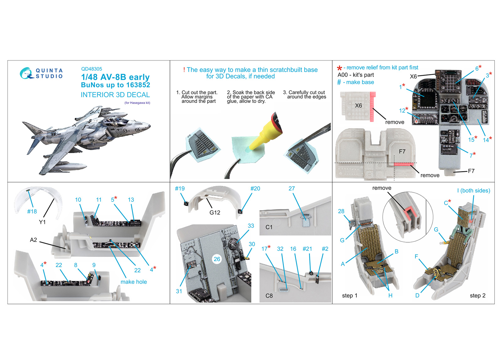 Quinta Studio - 1/48 McDonnell-Douglas AV-8B Harrier Early version 3D-Printed & coloured Interior on decal paper (for Hasegawa kits)