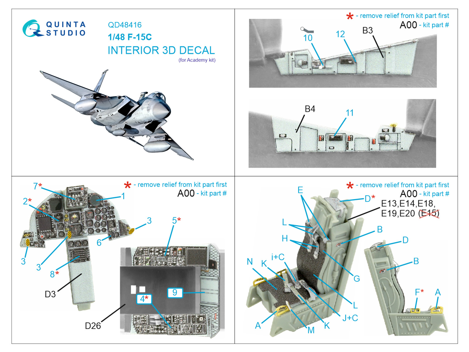 Quinta Studio - 1/48 McDonnell F-15C Eagle 3D-Printed & coloured Interior for Academy