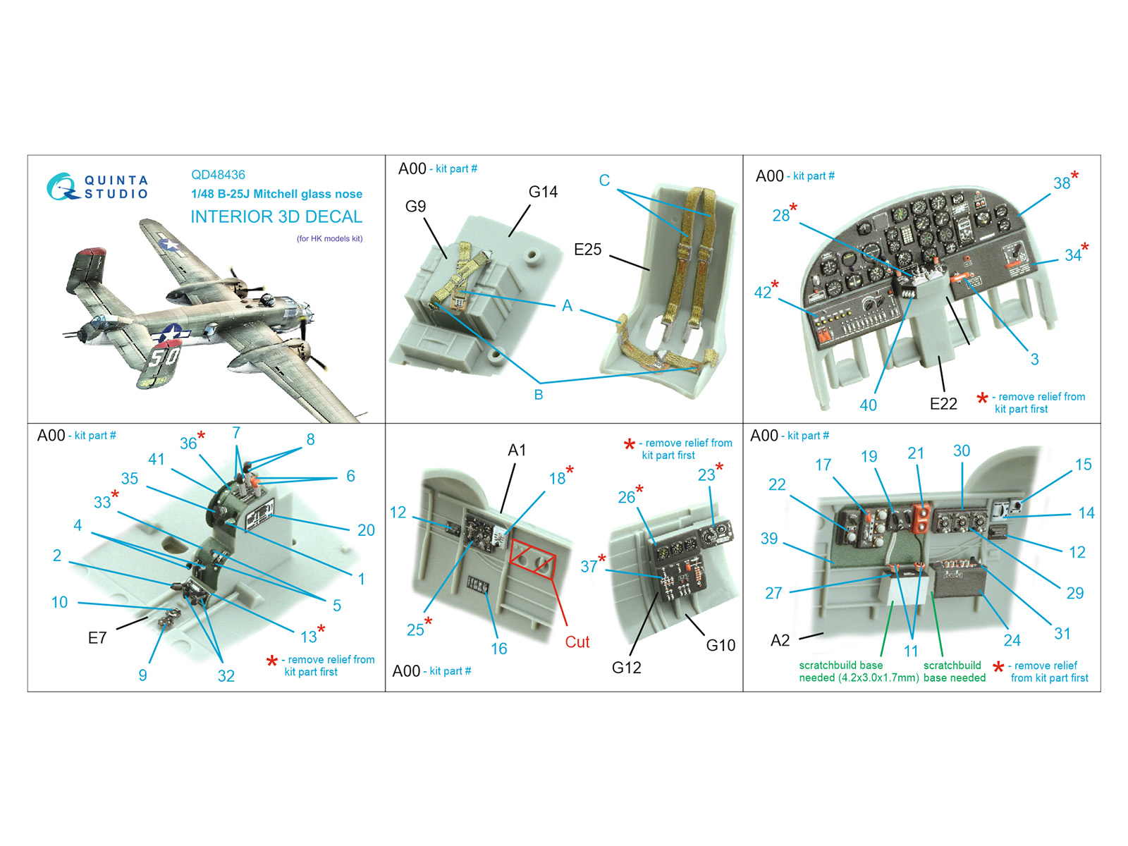 Quinta Studio - 1/48 B-25J Mitchell Glass Nose Interior for HK models