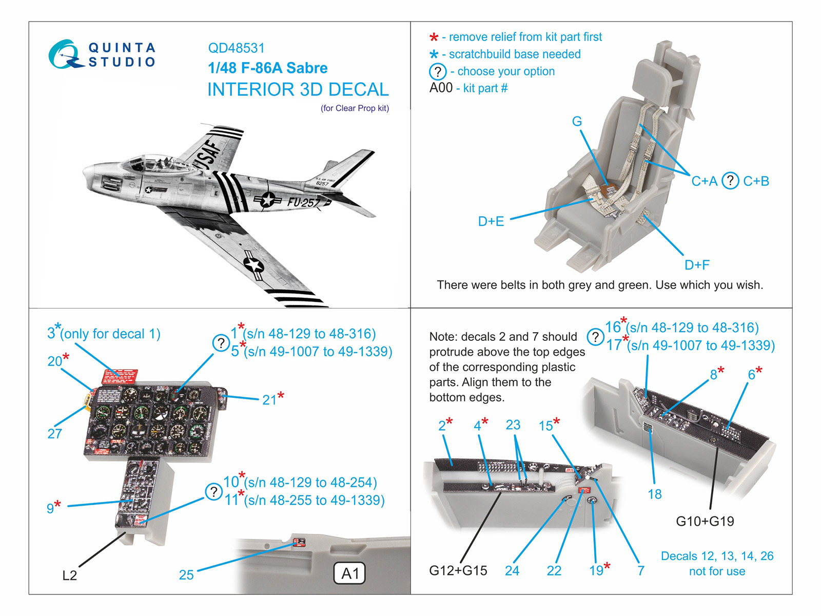 Quinta Studio - 1/48 North-American F-86A Sabre 3D-Printed coloured Interior for Clear Prop