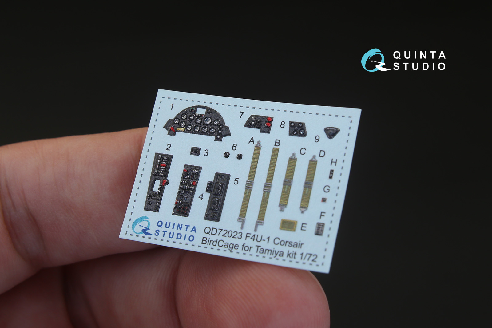 Quinta Studio - 1/72 Vought F4U-1 Corsair (Bird cage) 3D-Printed & coloured Interior on decal paper (for Tamiya kits)