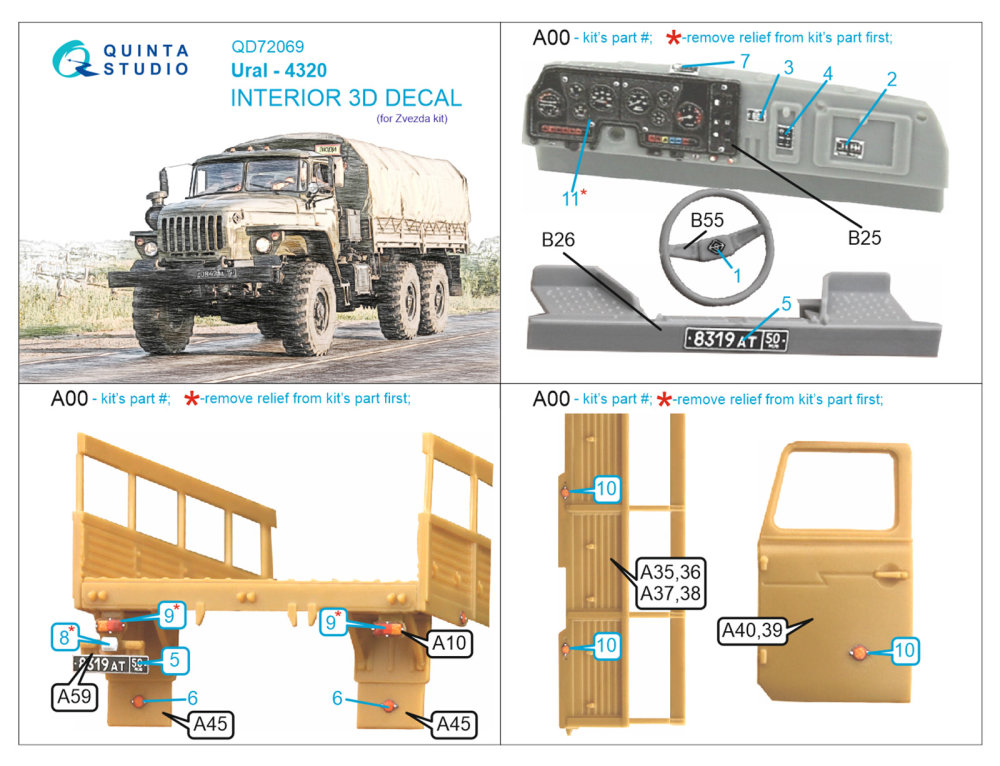 QUINTA STUDIO - 1/72 Ural-4320 3D-Printed & color Interior (ZVE)