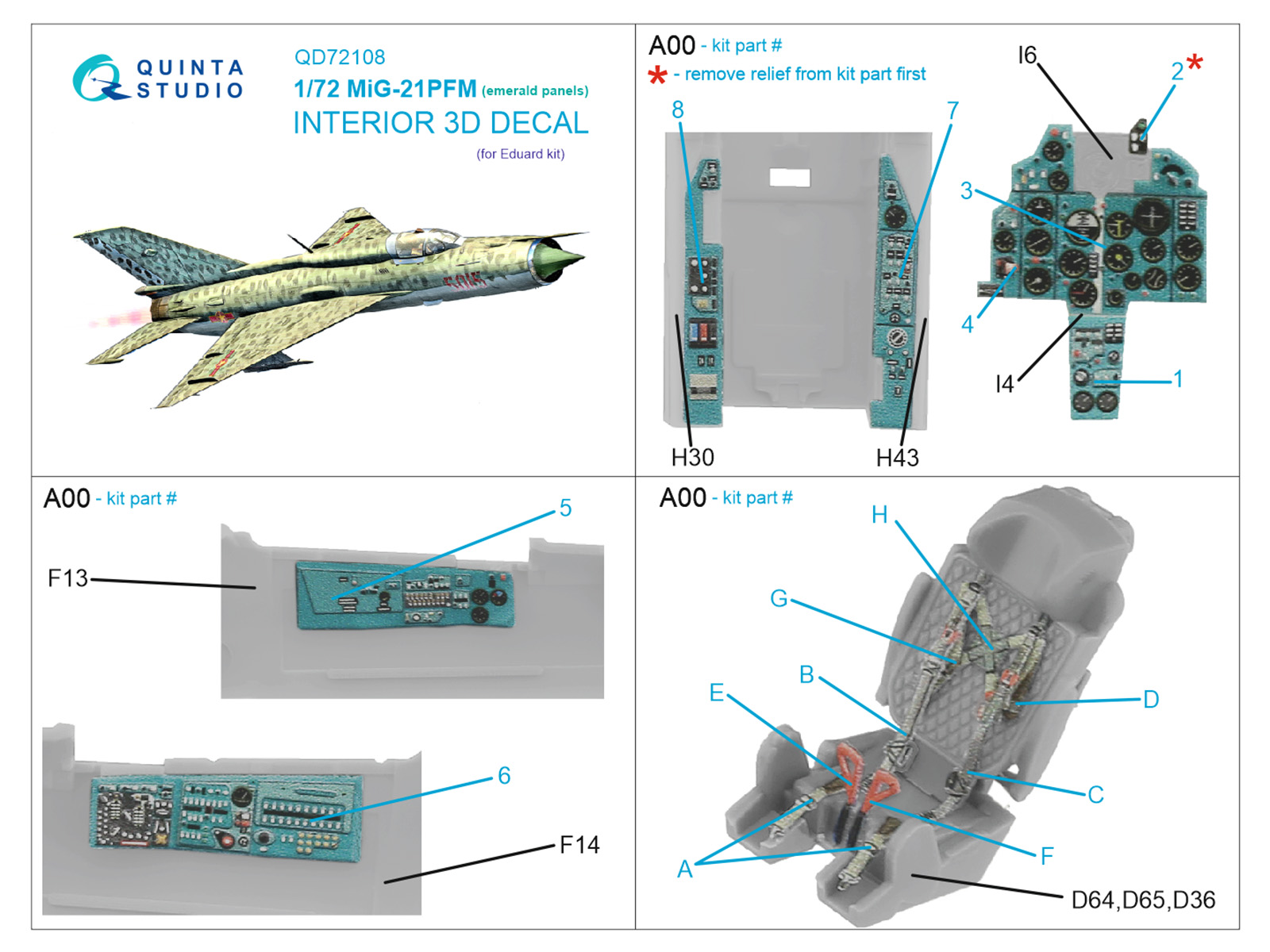 Quinta Studio - 1/72 MiG-21PFM Emerald panels Interior on decal paper for Eduard