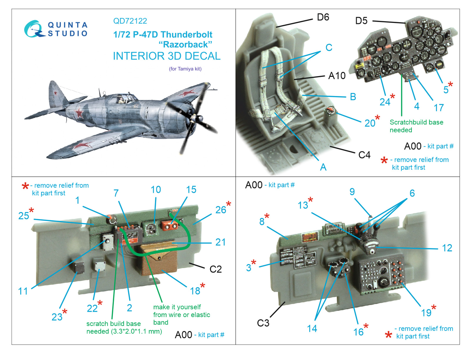 Quinta Studio - 1/72 P-47D Thunderbolt Razorback Interior on decal paper for Tamiya
