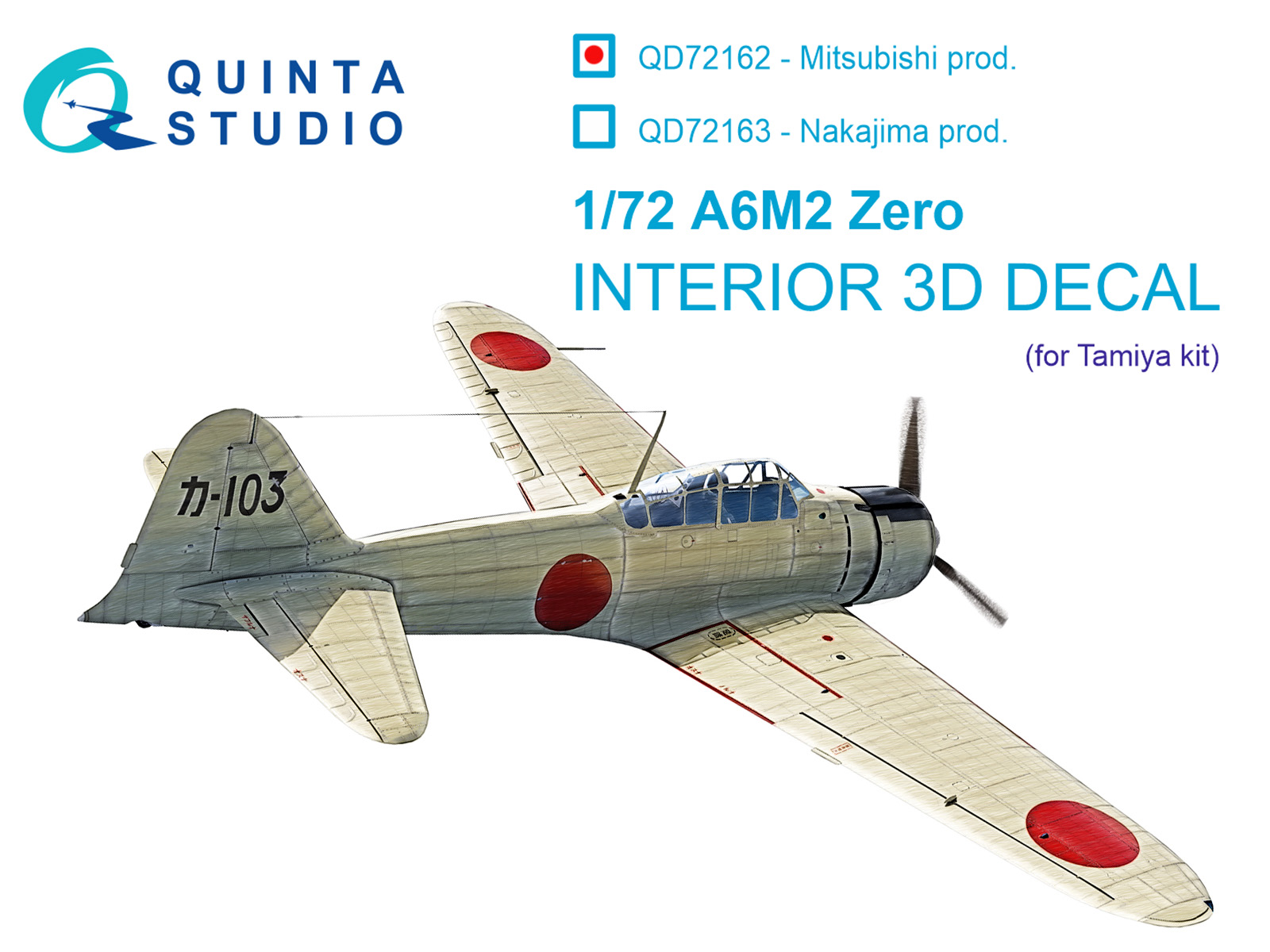 Quinta Studio - 1/72 A6M2 Zero for Mitsubishi Prod. Interior for Tamiya