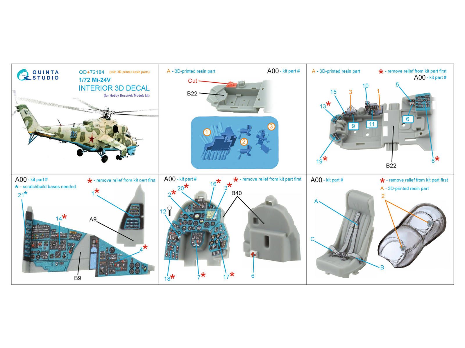 Quinta Studio - 1/72 Mi-24V Interior for Hobby Boss/ARK Models for with 3D-printed resin parts
