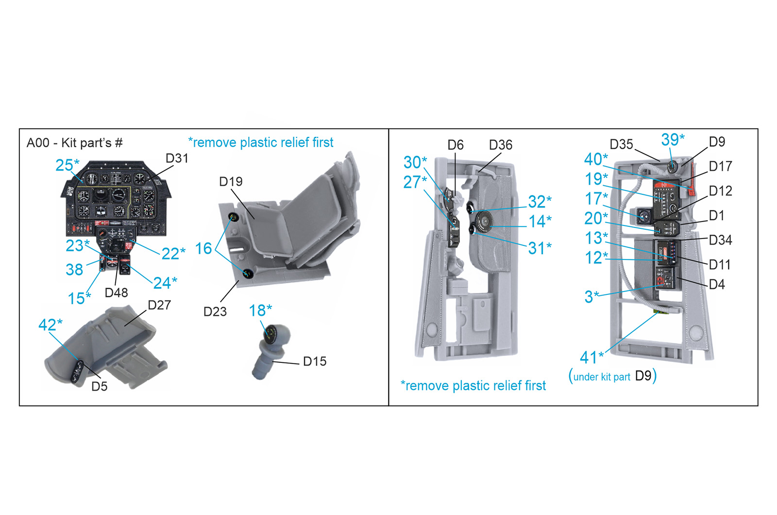 Quinta Studio - 1/32 North-American P-51D Mustang (Late) 3D-Printed & coloured Interior on decal paper (for Tamiya kits) (SMALL VERSION)
