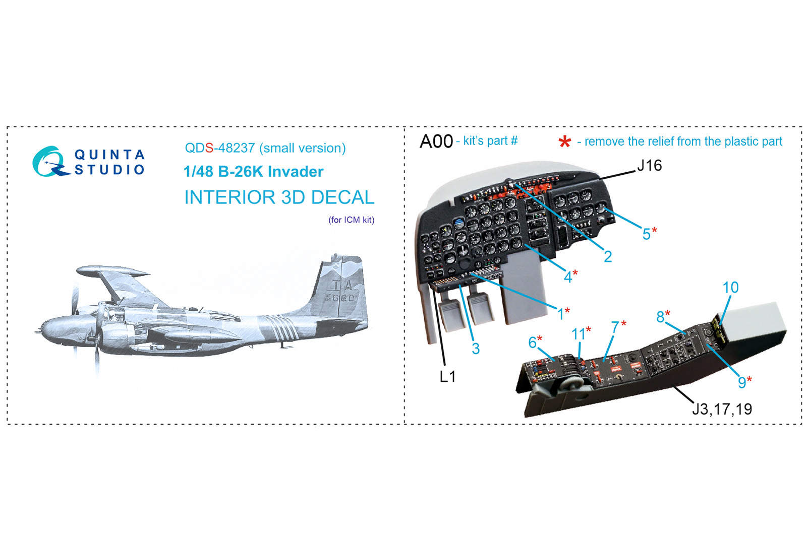 QUINTA STUDIO - 1/48 B-26K 3D-Print & color Interior SMALL (ICM)