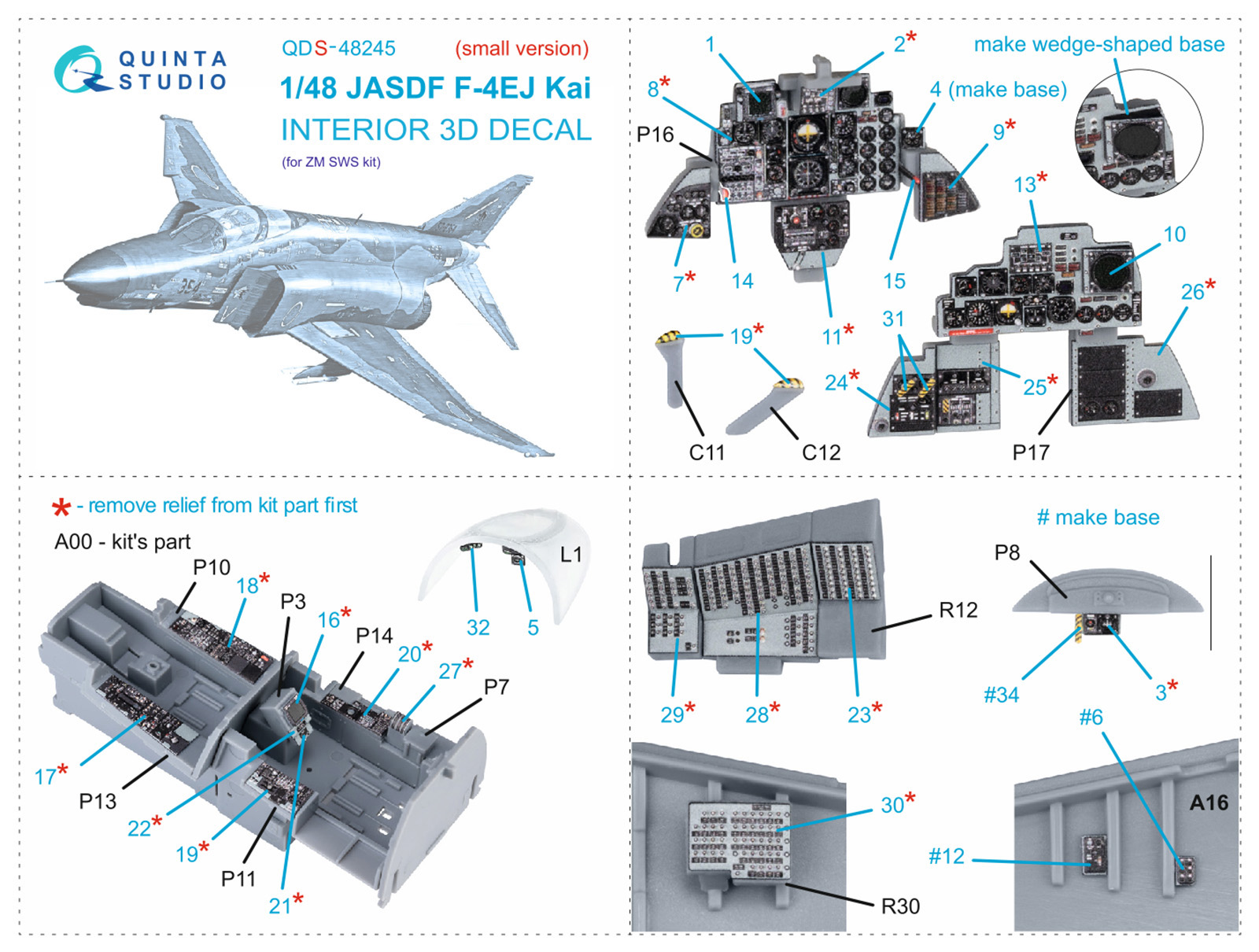 Quinta Studio - 1/48 McDonnell F-4EJ Phantom Kai 3D-Printed & coloured Interior on decal paper(SMALL VERSION) (for Zoukei-Mura kits) (SMALL VERSION)