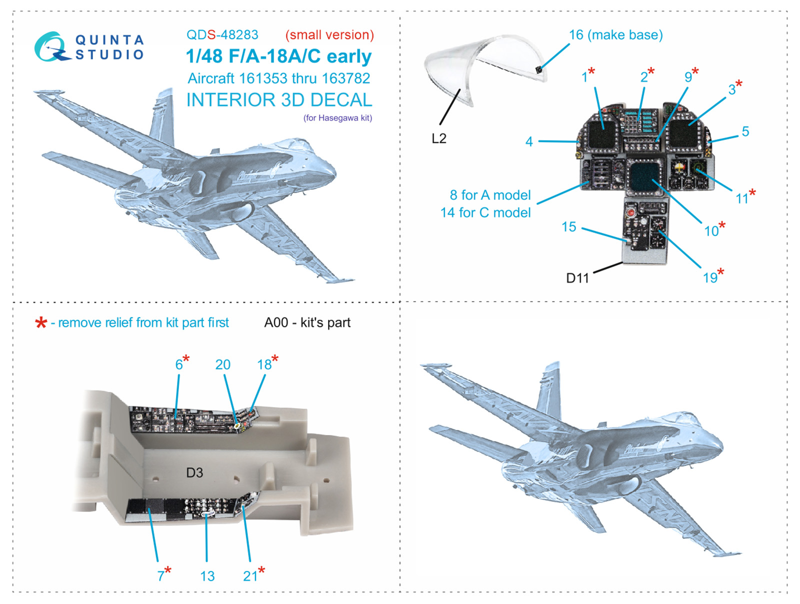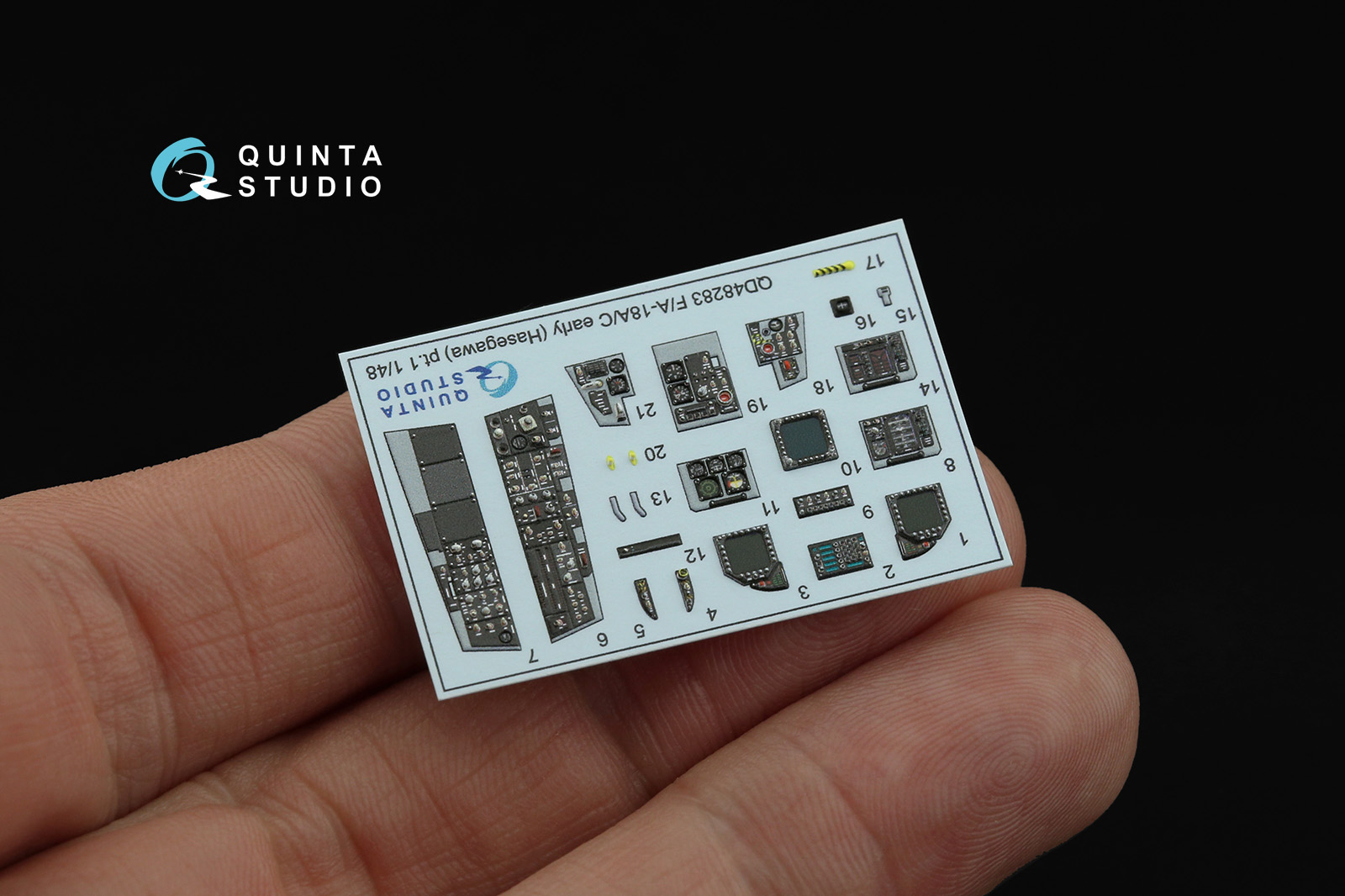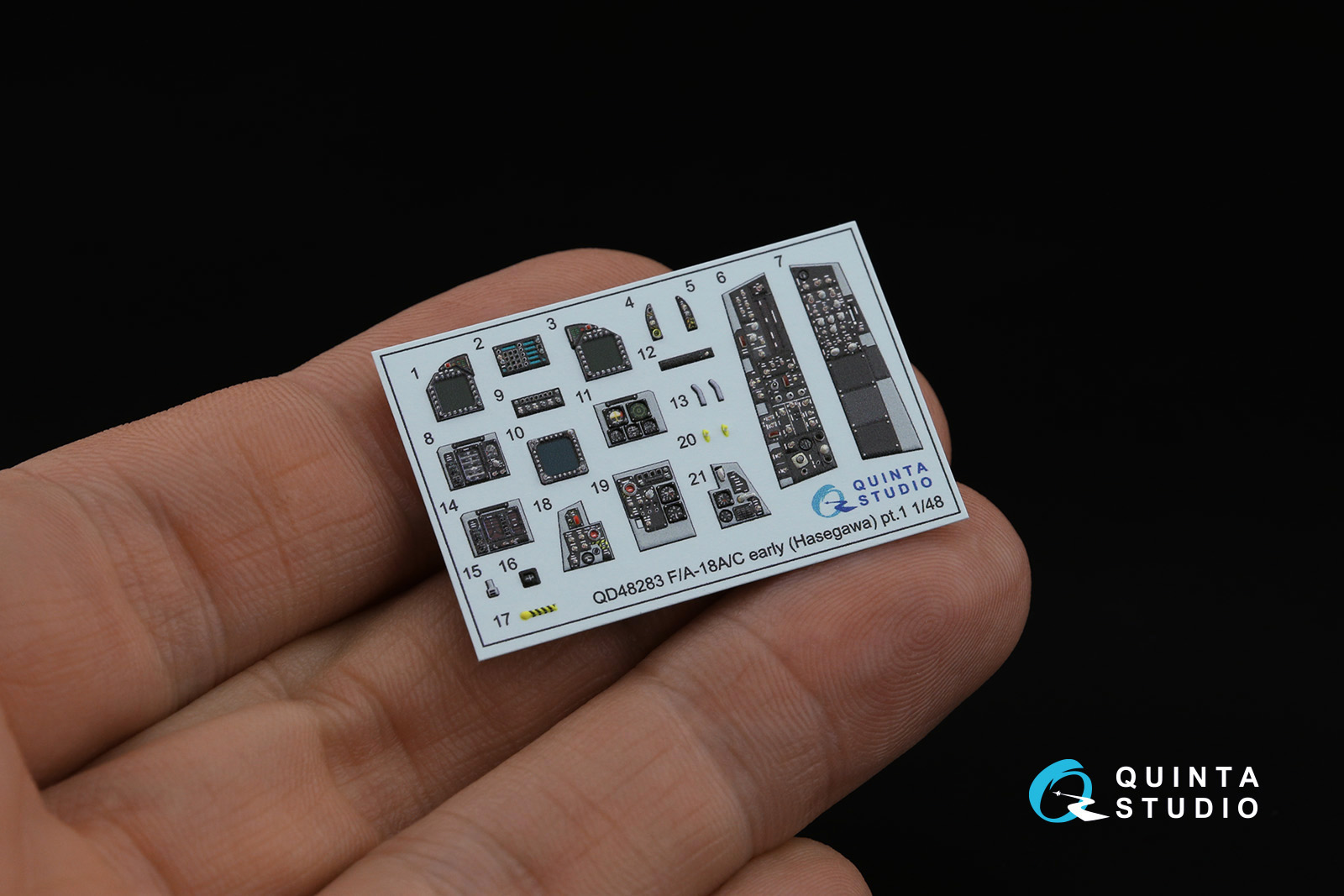 Quinta Studio - 1/48 F/A-18A / F/A-18C early 3D-Printed & coloured Interior on decal paper (for Hasegawa kits)(SMALL VERSION)