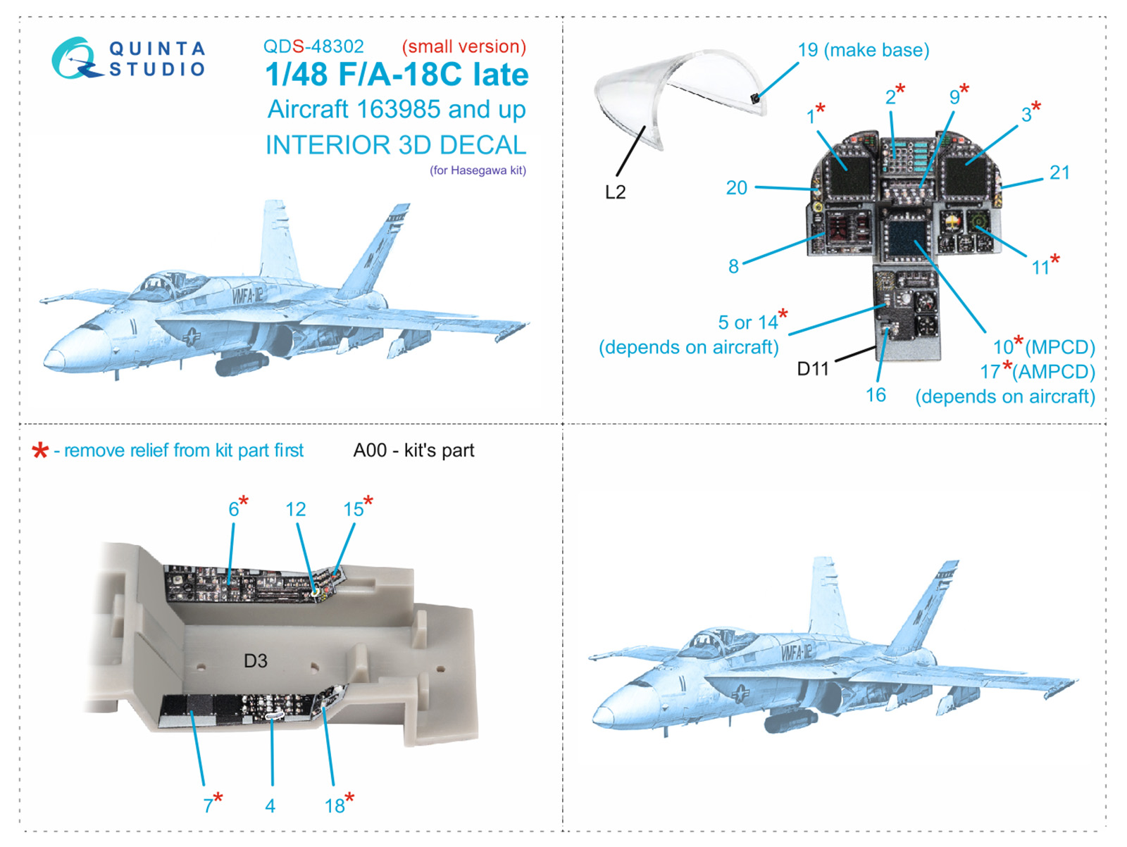 Quinta Studio - 1/48 McDonnell-Douglas F/A-18C late 3D-Printed & coloured Interior on decal paper (for Hasegawa kits)(SMALL VERSION)