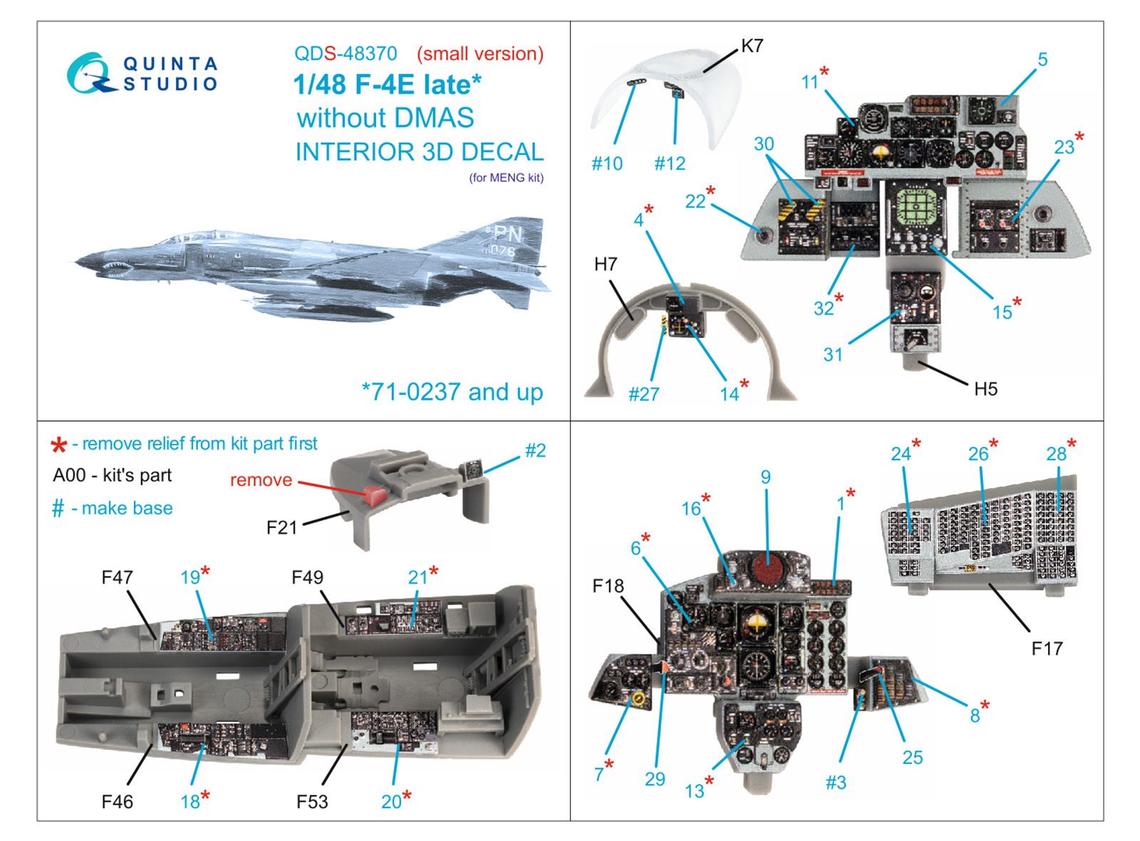 Quinta Studio - 1/48 McDonnell F-4E Phantom late without Dmas 3D-Printed & coloured Interior on decal paper (for Meng Model kits) (Small version)