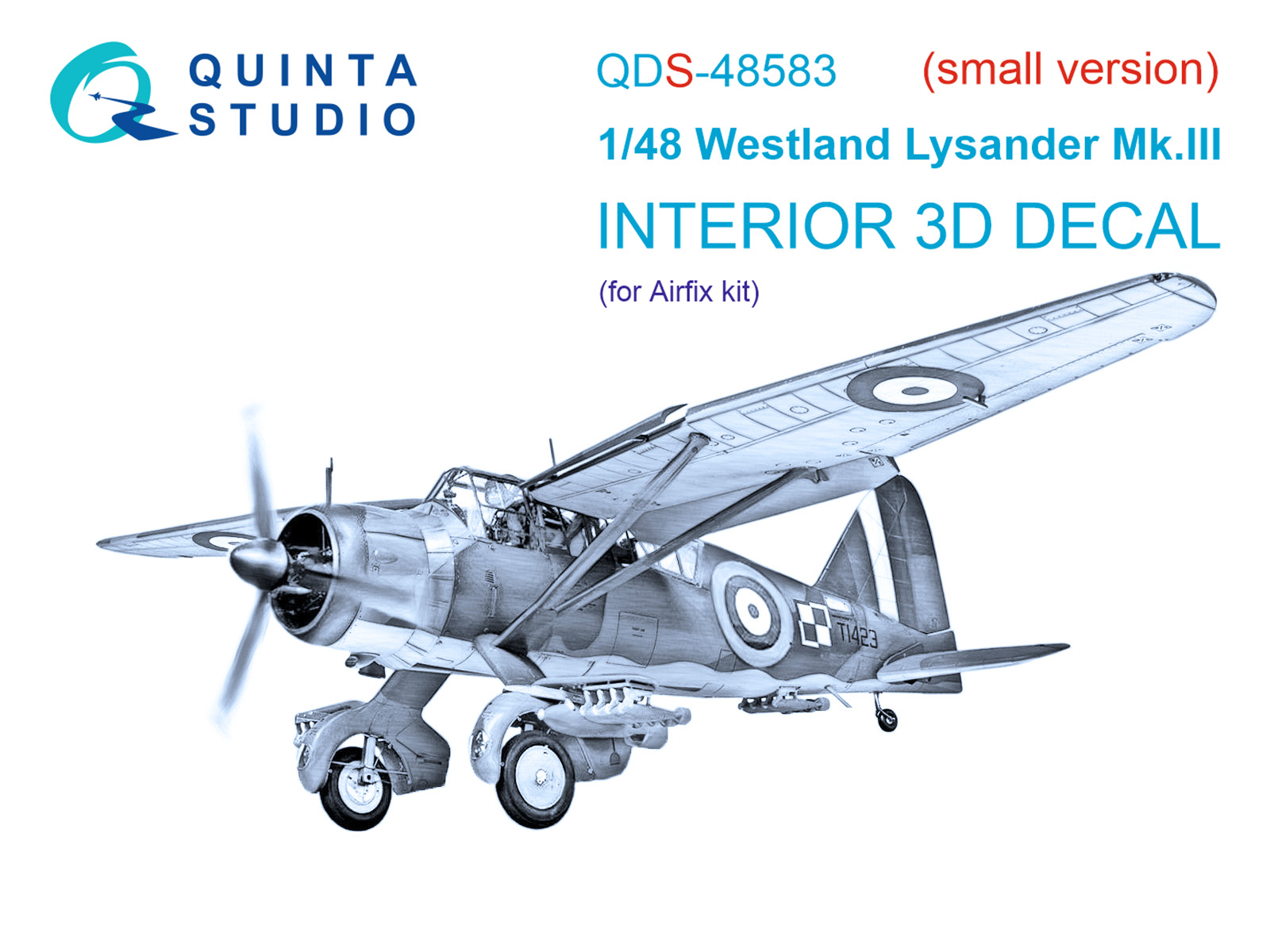 Quinta Studio - 1/48 Westland Lysander Mk.III 3D-Printed & coloured Interior for Airfix, Small version