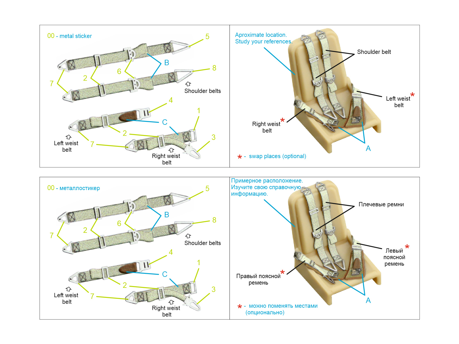 1/48 WWII German fighter seat belts with metal buckles