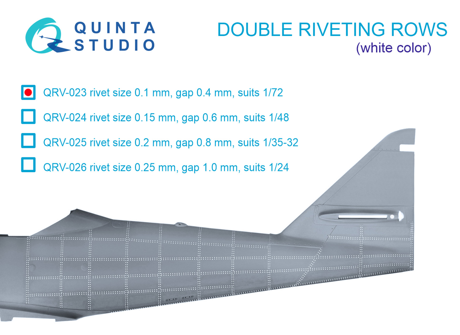 Quinta Studio - Double riveting rows (rivet size 0.10 mm, gap 0.4 mm, suits 1/72 scale), White color, total length 6.7 m/22 ft