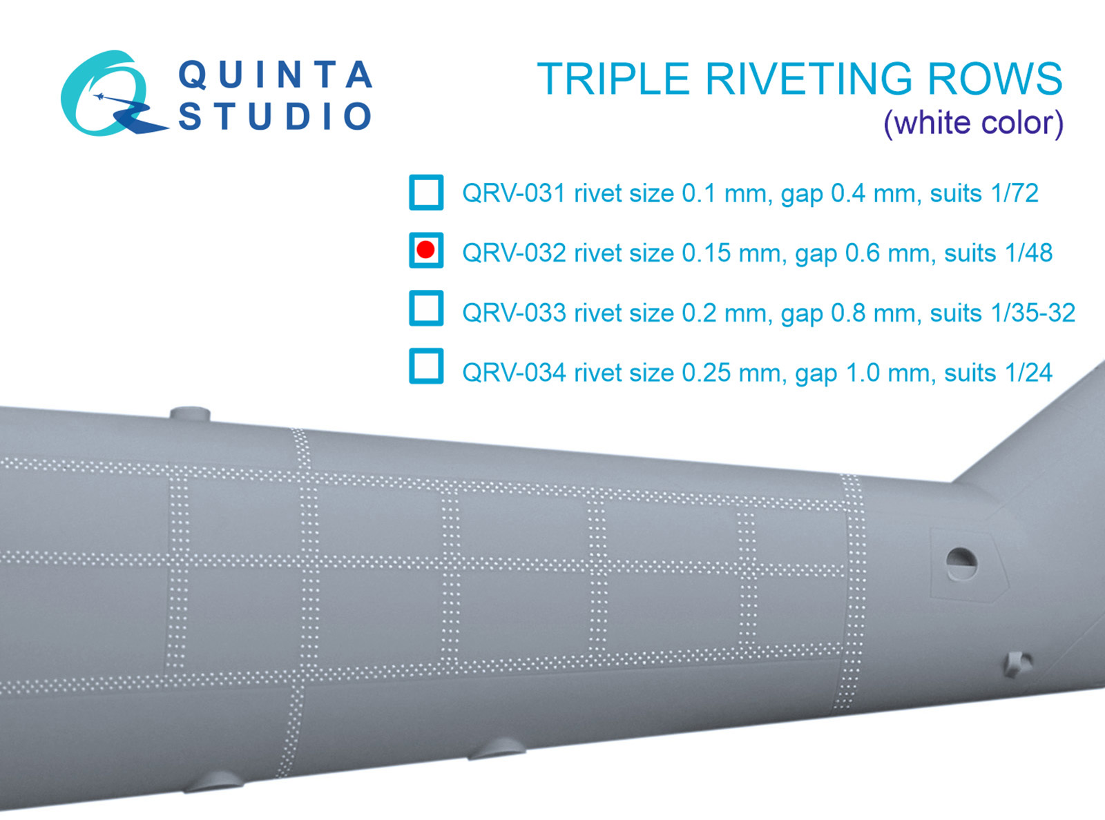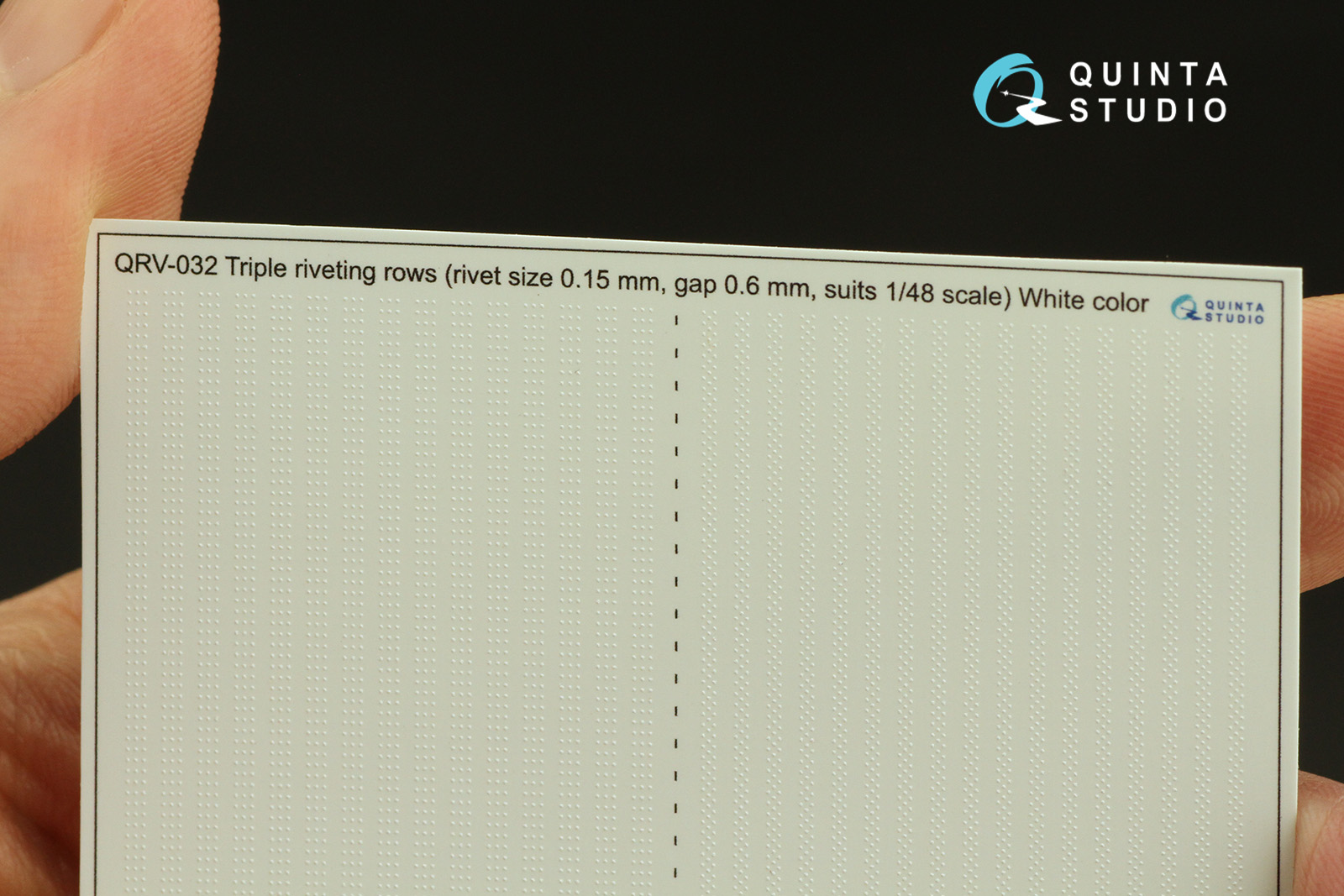Quinta Studio - Triple riveting rows (rivet size 0.15 mm, gap 0.6 mm, suits 1/48 scale), White color, total length 4.4 m/14 ft